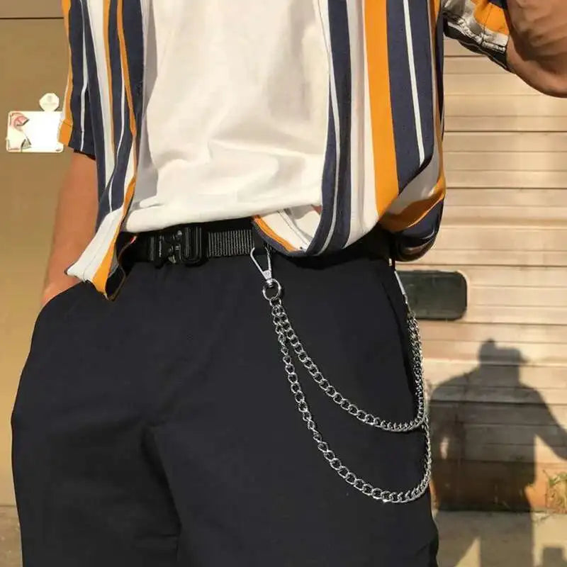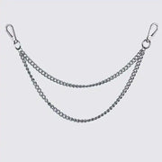 Add instant edge to your fits with the Double-Layer Belt Chain. Designed to clip easily onto belt loops, this two-tier chain brings a streetwear and punk-inspired accent to any look. Lightweight but durable, it works as both a style statement and a functional piece for keys or small accessories.