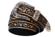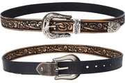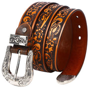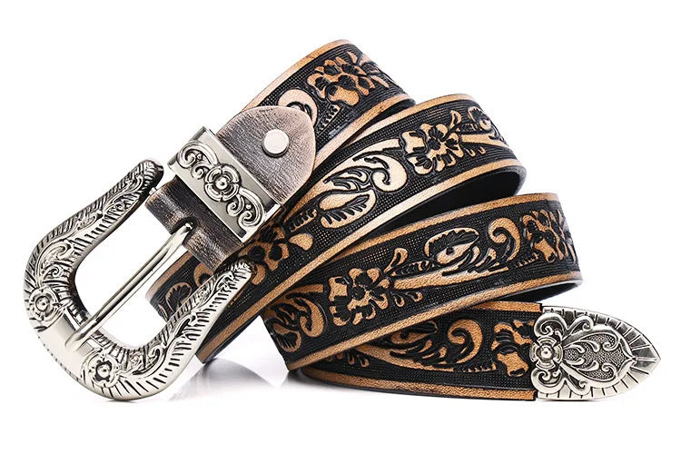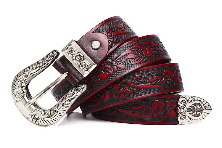 Crafted from genuine leather and finished with intricate embossed detailing, the Seongsu Embossed Western Belt draws inspiration from Seoul’s artisan district — where tradition meets modern craftsmanship. The aged silver-tone buckle and vintage floral motif bring a touch of rugged character, making it an elevated staple for any wardrobe.