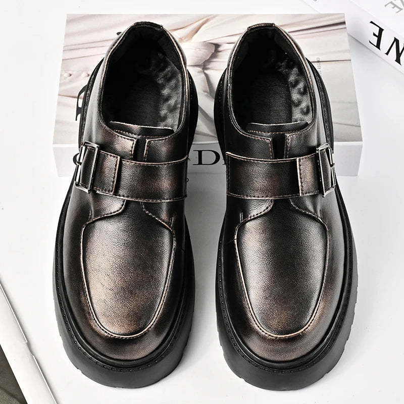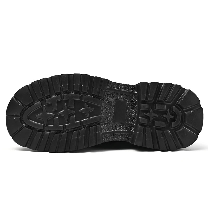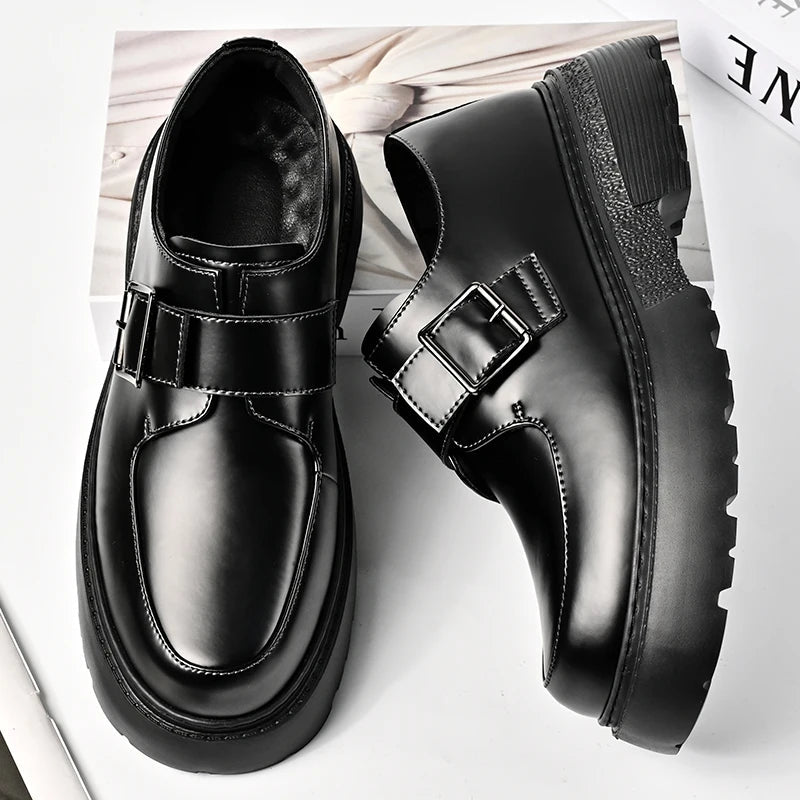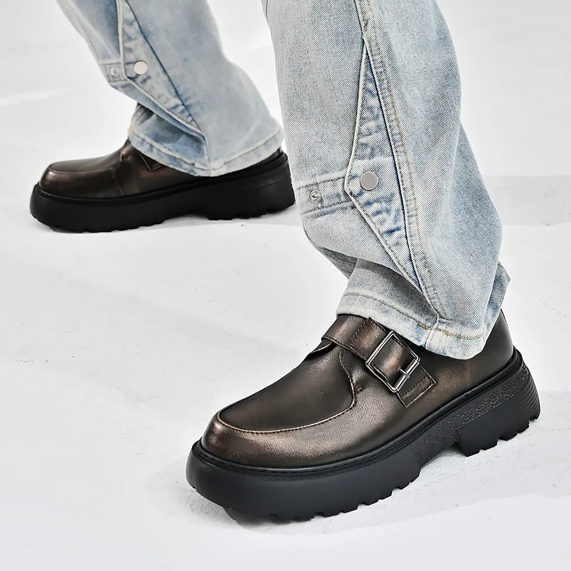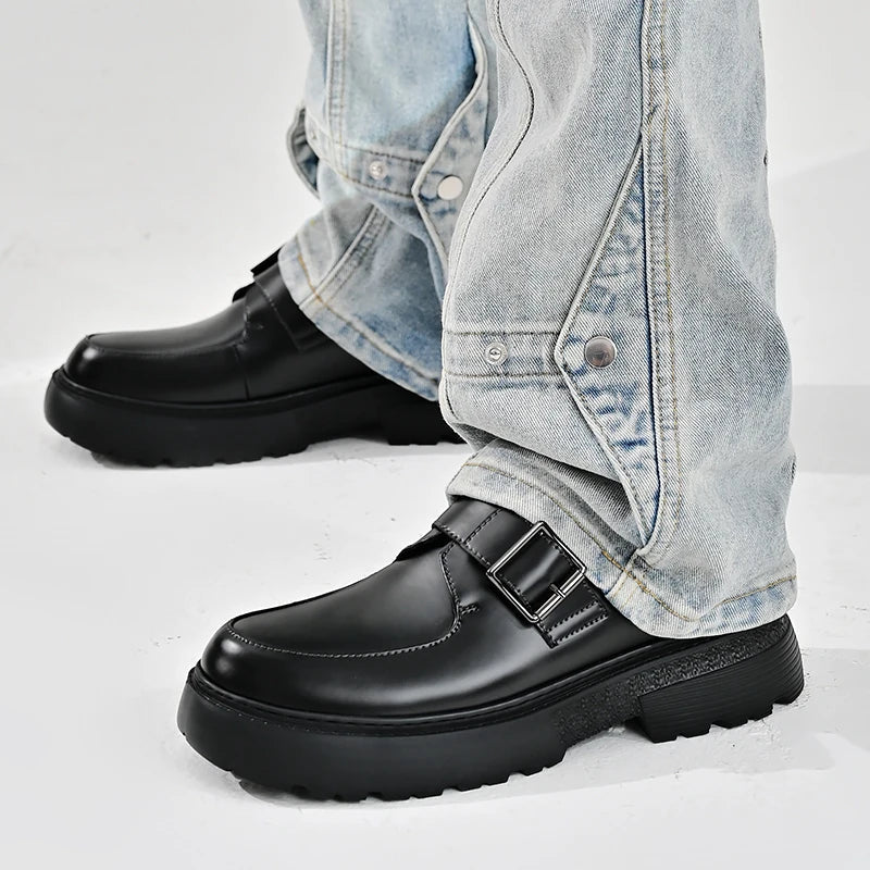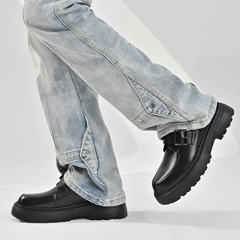 Crafted with patent upper material and a chunky rubber sole, these Hoegi Derby shoes offer both style and functionality. The metal buckle detail adds a touch of sophistication, while the textured tread provides traction and durability.