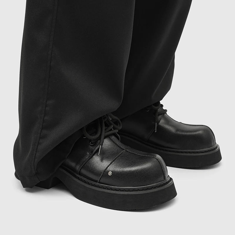 Step heavy in these chunky lace-up shoes, built with an oversized sole and subtle hardware details. A streetwear take on the classic derby, they balance clean lines with bold proportions — perfect for adding edge to wide-leg denim or tailoring.