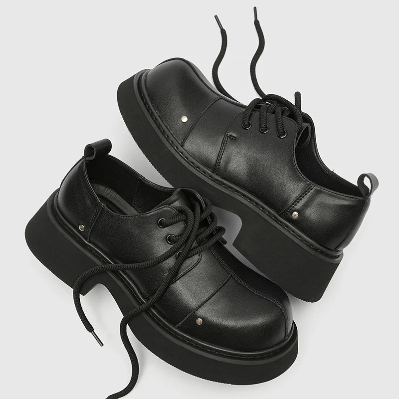 Myeongdong Rivet Detail Lace-Up Platform Shoes