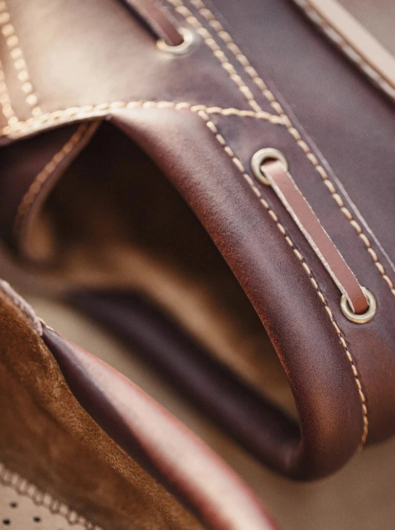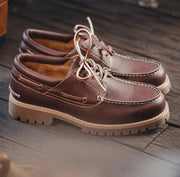 Step into timeless style with our Teheran Lace-Up Boat Shoes. Crafted with a leather upper and contrast stitching, these shoes offer both classic and contemporary elements. The rubber outsole and textured tread provide durability and traction, while the lace-up design adds a touch of sophistication.
