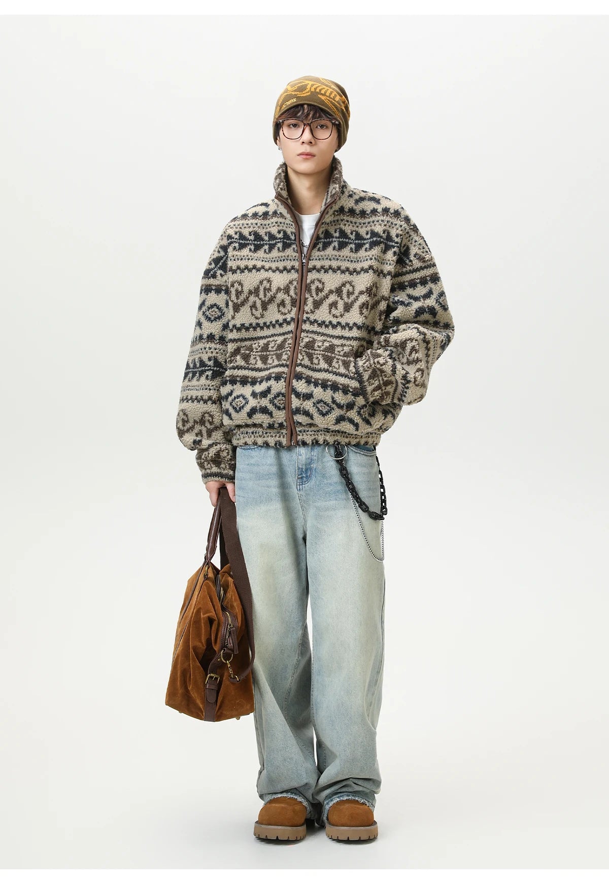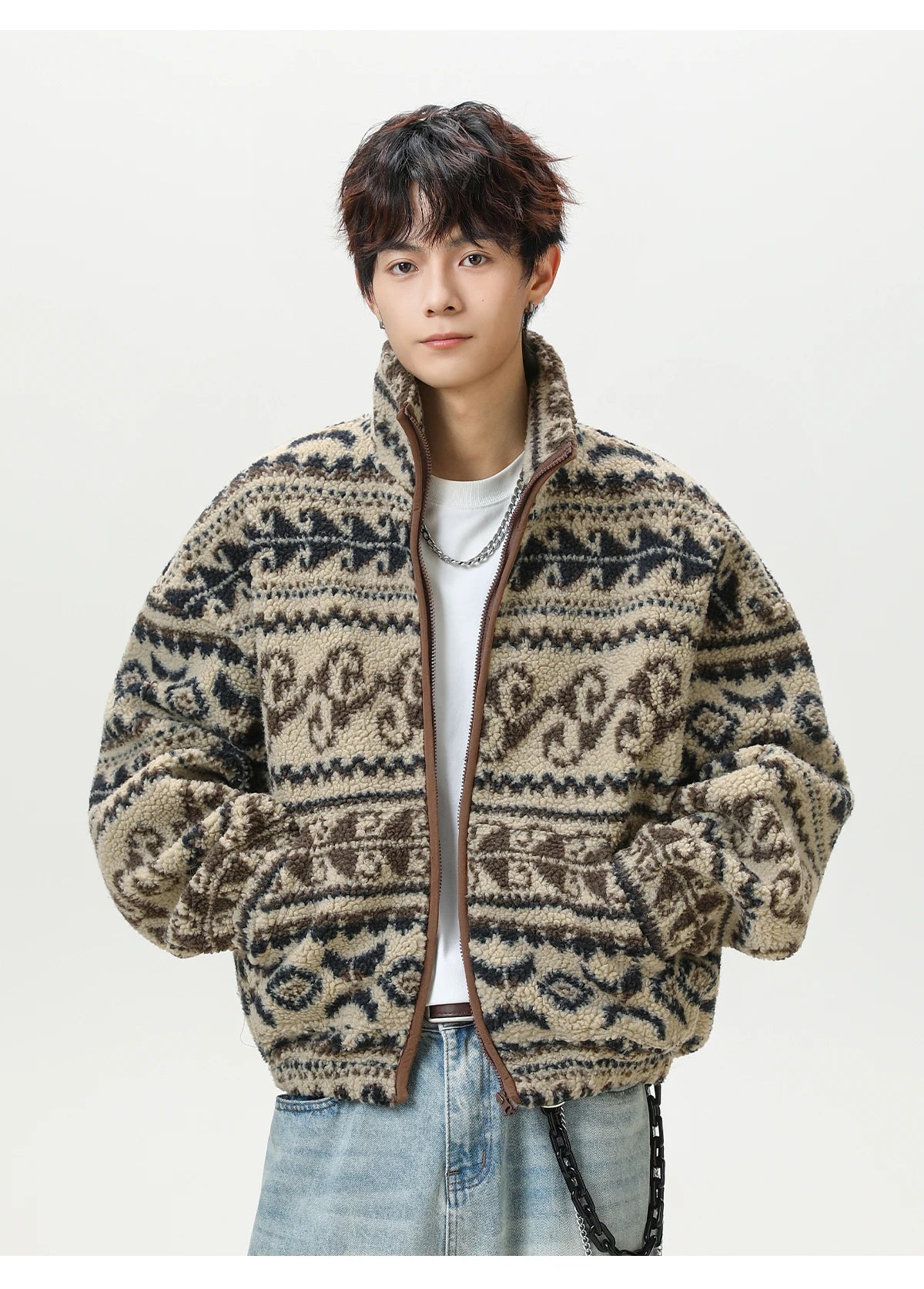 Pair with wide-leg denim and sneakers for a Seoul-inspired street look, or layer over a plain tee with cargo trousers for an off-duty outdoor vibe. For a more refined edge, combine with tailored trousers and boots to contrast the heritage pattern with clean minimal styling.