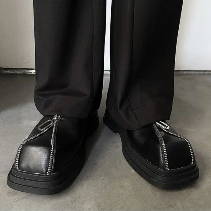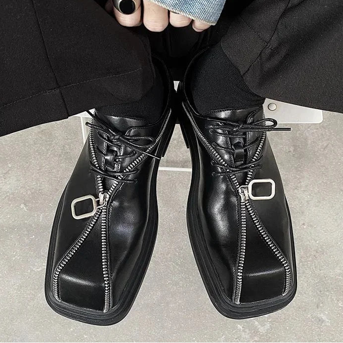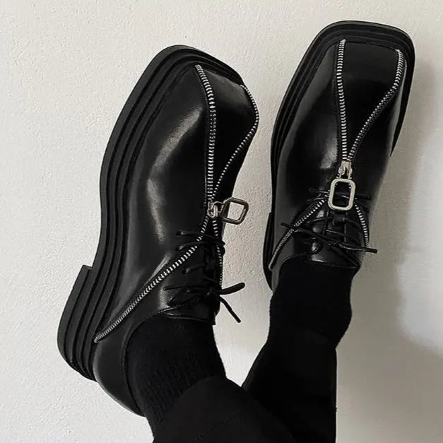 Elevate your streetwear vibe with the Euljiro Square Toe Zipper Shoes. These stylish shoes feature a standout square toe and a unique front zipper design that sets them apart. The lace-up fastening ensures a secure fit, while the textured chunky tread adds a rugged touch for your urban explorations. Made with durable PU and a robust rubber outsole, these shoes are built to last. Step out in style and make a statement with every step you take.