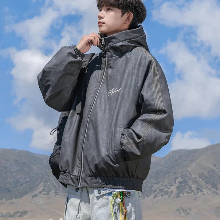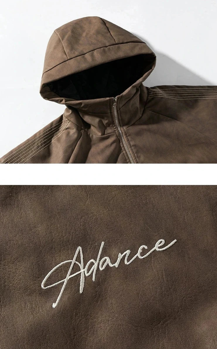 This hooded faux leather jacket is a stylish addition to your wardrobe. Crafted from high-quality PU leather, it features a quilted cotton lining for added comfort.