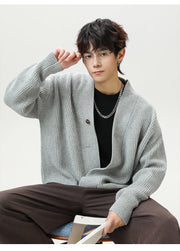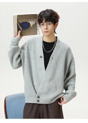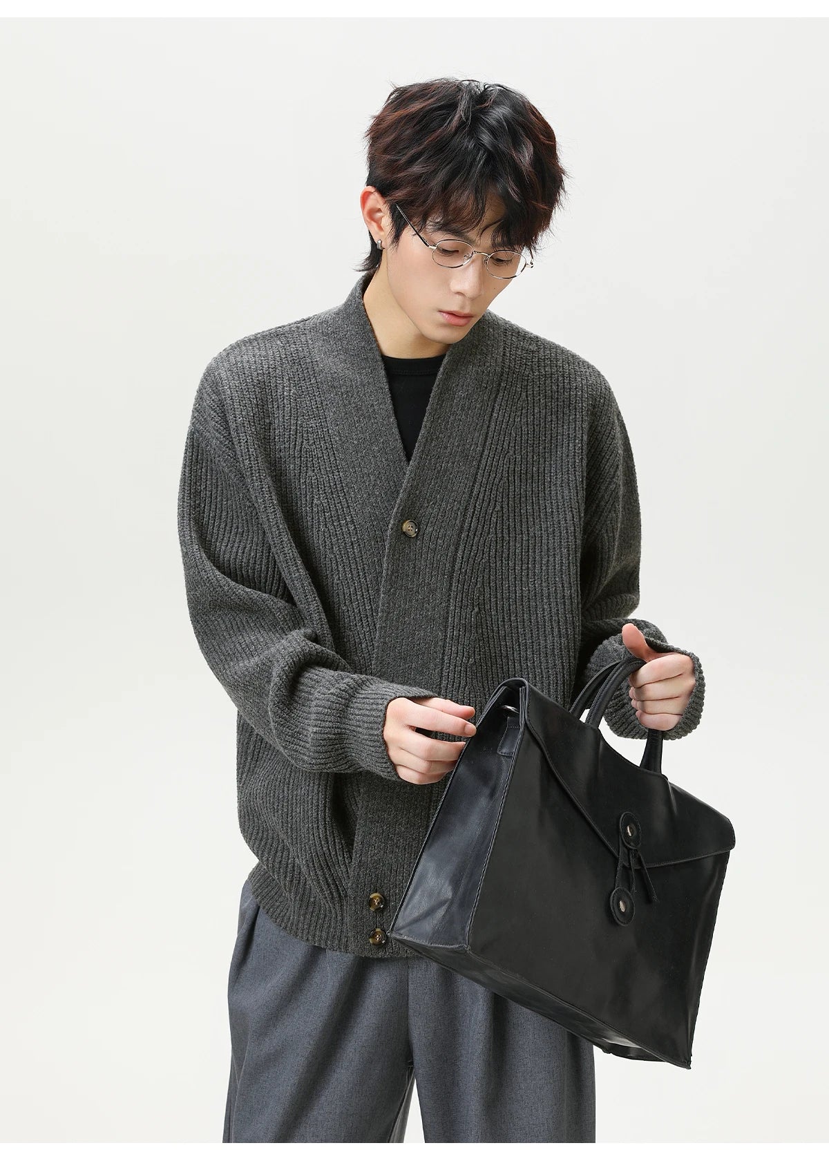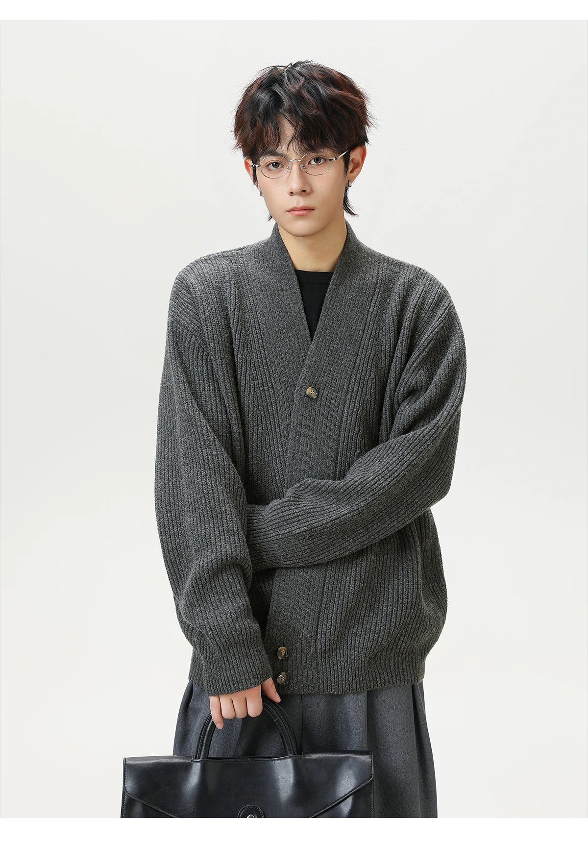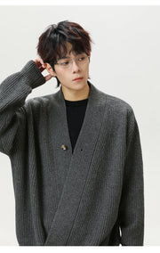 The Rib Knit Robe Cardigan blends relaxed tailoring with minimalist Korean-inspired design. Cut with a loose, draped fit, it’s designed to echo the silhouette of a modern robe while maintaining the versatility of a classic cardigan. The ribbed knit texture adds structure and warmth, while the button-up front allows it to be styled open or closed for effortless layering. Ideal for transitional weather, it pairs traditional influence with clean, contemporary lines.