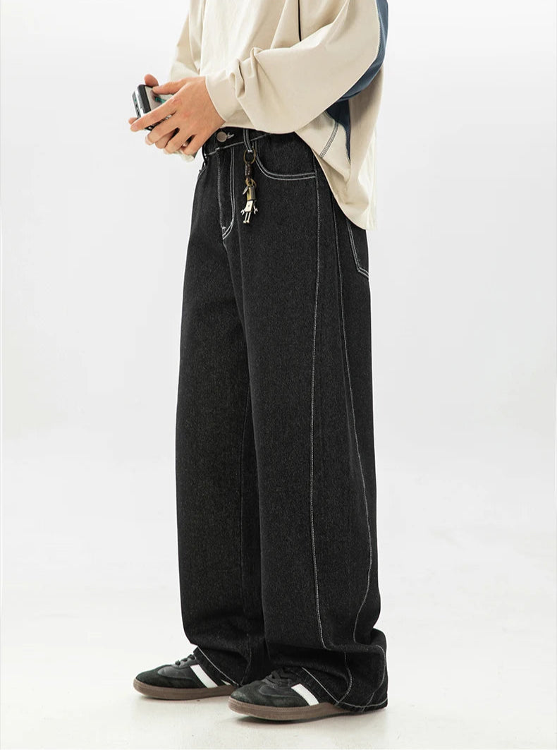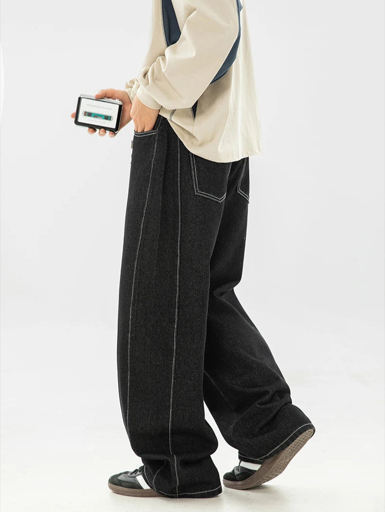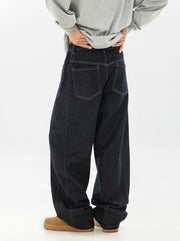 Level up your denim game with these Contrast Stitch Dark Rinse Jeans. Cut from 100% cotton, they’ve got a relaxed skater fit, bold contrast stitching and a clean dark rinse for a sharp finish. Classic five-pocket setup, button fly, and belt loops keep it low-key and timeless. Everyday staple with just enough edge.