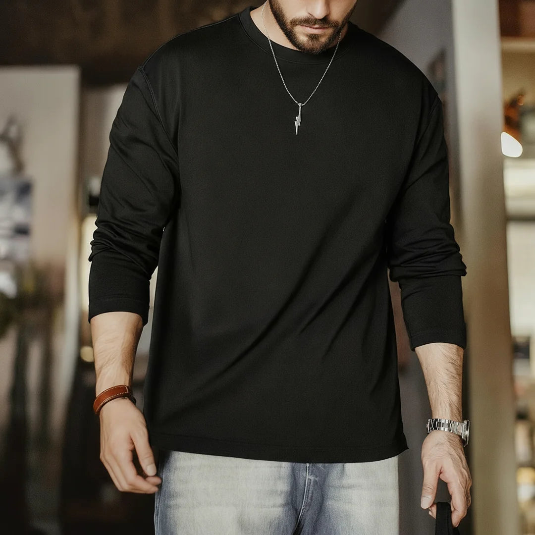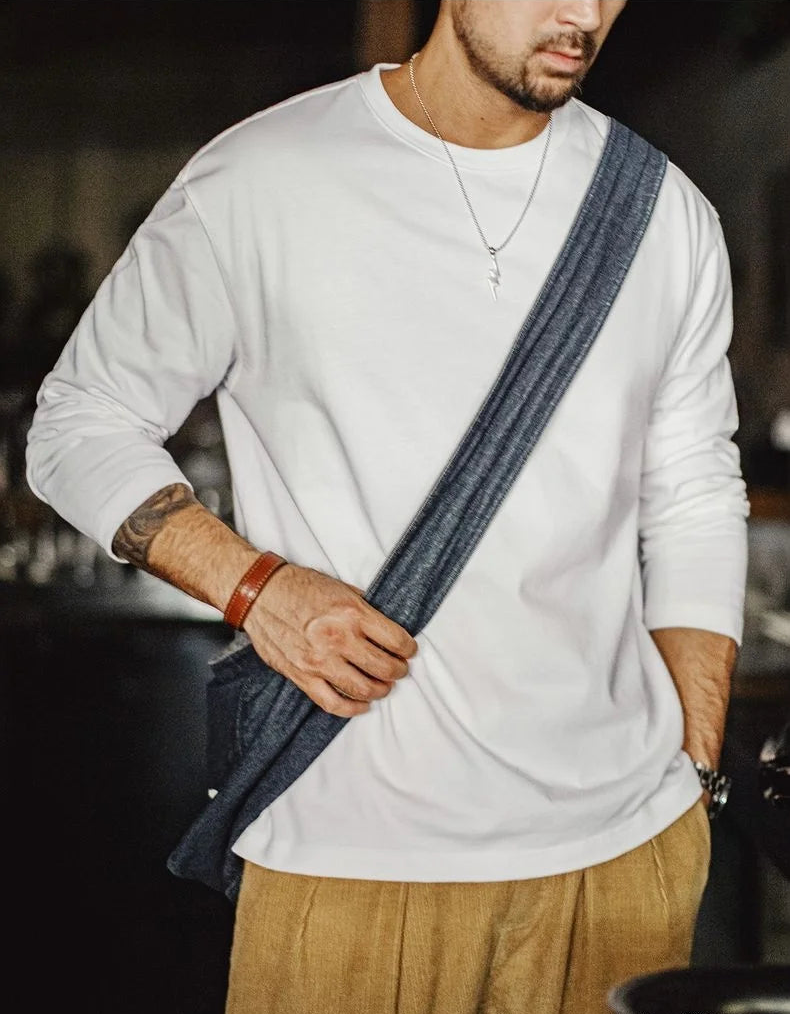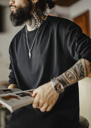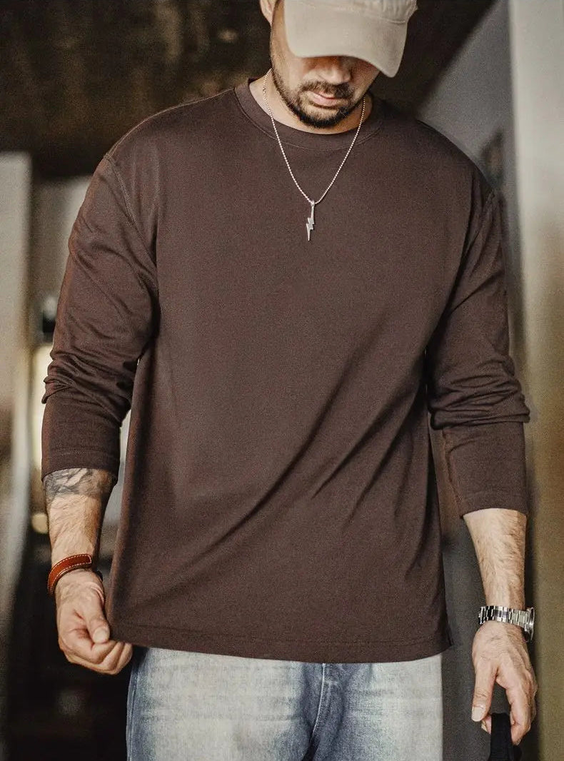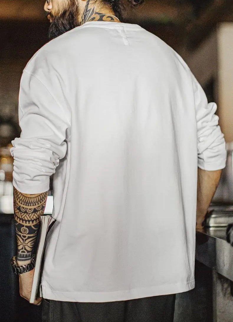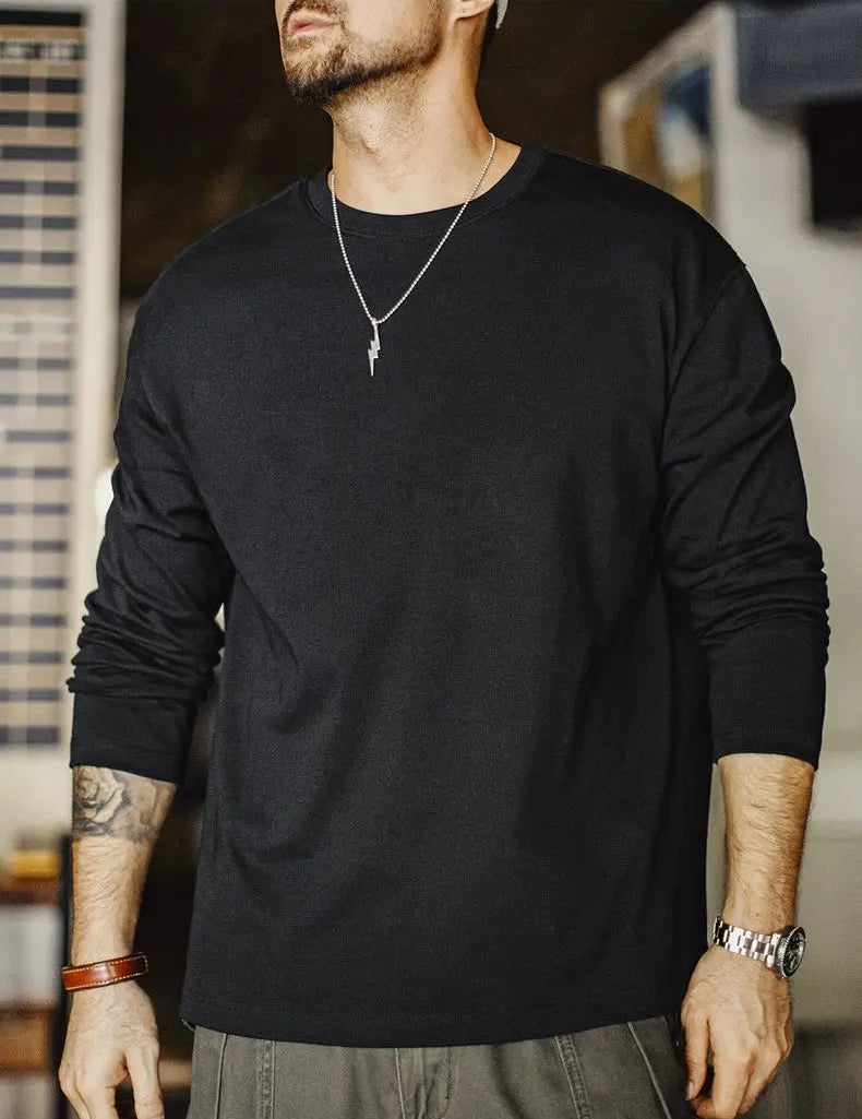 A premium everyday essential made from high-quality long-staple cotton. This heavyweight long sleeve T-shirt uses a dense 305 GSM cotton fabric that feels soft, breathable and naturally structured. The fabric retains the natural texture of cotton fibres, creating a comfortable feel that becomes even softer with wear and washing.
