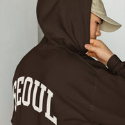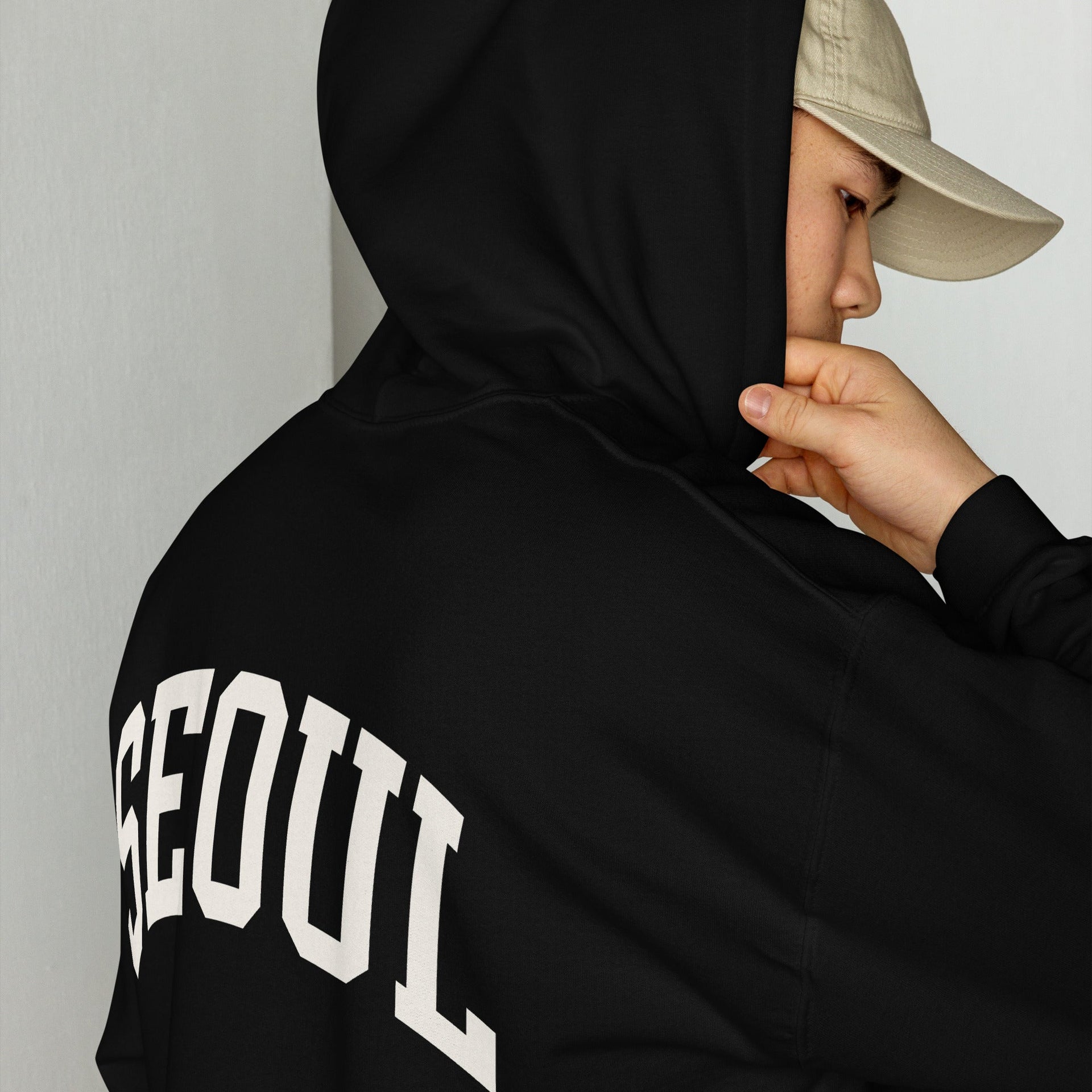 Elevate your style to the next level with the SOS Logo 'Seoul' Hoodie. Expertly crafted from a sumptuous blend of 50% pre-shrunk cotton and 50% polyester, and garment-washed with air-jet spun yarn to provide a plush feel and minimize pilling, this hoodie also features 1 × 1 athletic rib-knit cuffs and waistband with spandex, a double-lined hood with matching drawcord, and a quarter-turned body to ensure a perfect fit. Boasting a luxurious SOS logo chest embroidery and back 'Seoul' print, this hoodie will become your go-to for unparalleled comfort and sophistication.