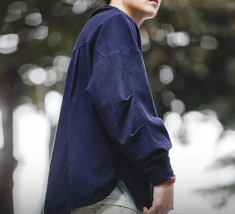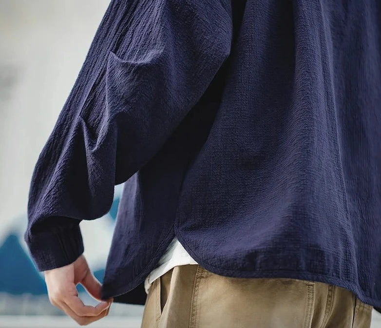 Introducing our Textured Throwover Shirt, a must-have for a luxurious summer wardrobe. Made with fine cotton and featuring a chest pocket, open neck collar with buckle strap, cuff sleeves, and side slits. The drop sleeves and textured design add a touch of sophistication, making it the perfect summer throwover.