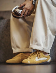 Built for motion, styled for the streets. The Dongdaemun Speedmax blends retro racing DNA with Seoul streetwear attitude, featuring a sleek silhouette and a low-profile sole engineered for grip and responsiveness. Suede, nylon, and leatherette textures collide with subtle gold detailing to nod to speed, precision, and style. Inspired by Dongdaemun’s fast-moving fashion hub and night markets—where everything’s always in motion.