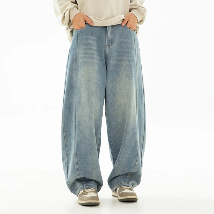 Upgrade your denim game with the Essential Arc Leg Jeans. Made from 100% cotton denim with a washed finish, these jeans bring effortless style and comfort. The relaxed fit, elasticated waist, and front seam detail give them a clean yet laid-back vibe. Finished with side and front pockets, a button fly, and belt loops—built for everyday wear.