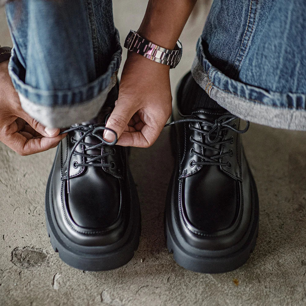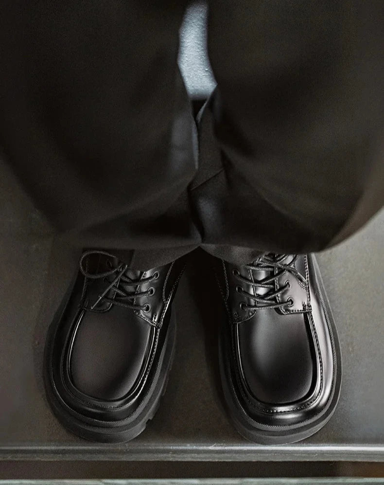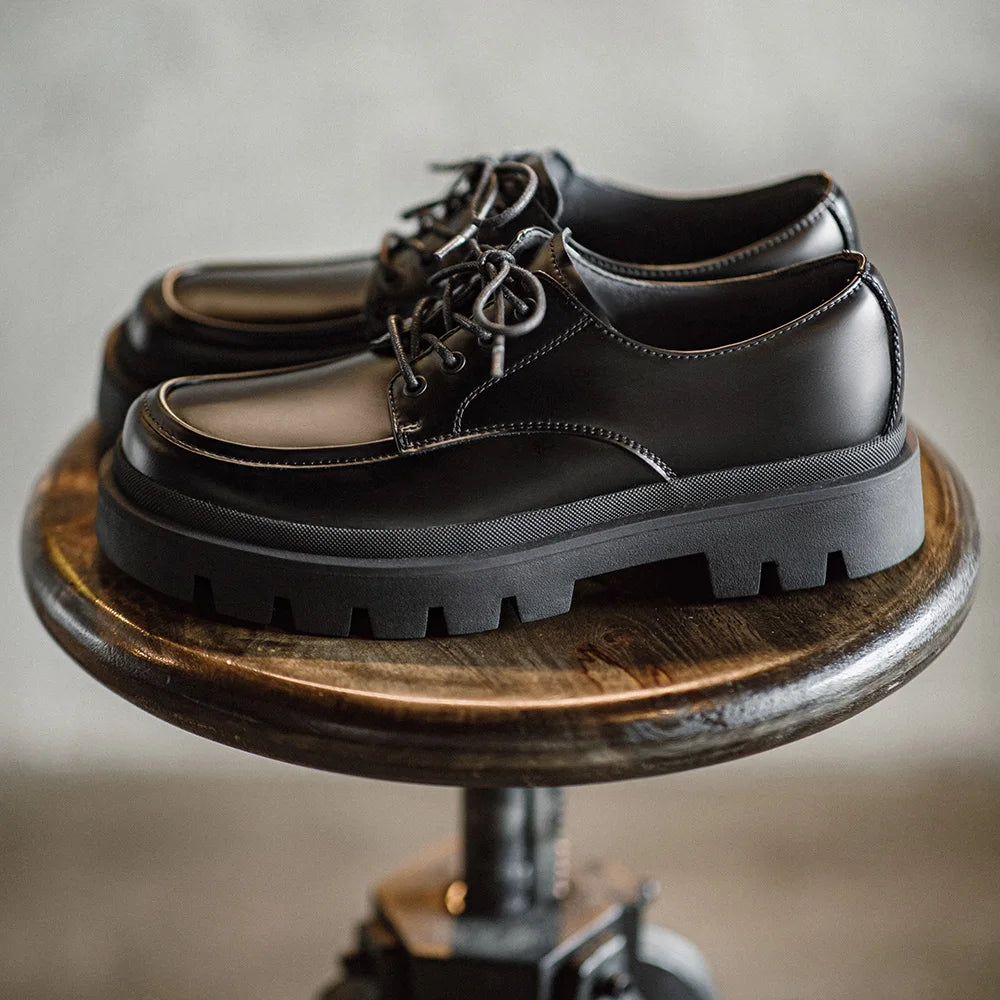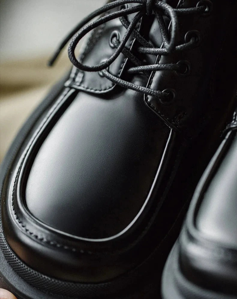 Introducing the Dapsimni Apron Toe Lace Up Shoes - the epitome of luxury footwear. These elegant shoes feature a round apron toe and lace up design, paired with a chunky sole and textured tread for added sophistication. Crafted with premium leather and a durable rubber outsole, these shoes are the perfect blend of style and functionality. Elevate your wardrobe with these exclusive shoes.