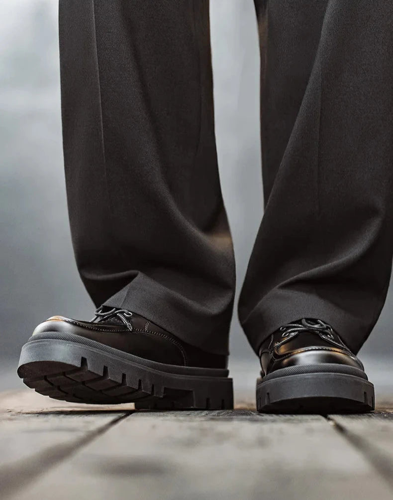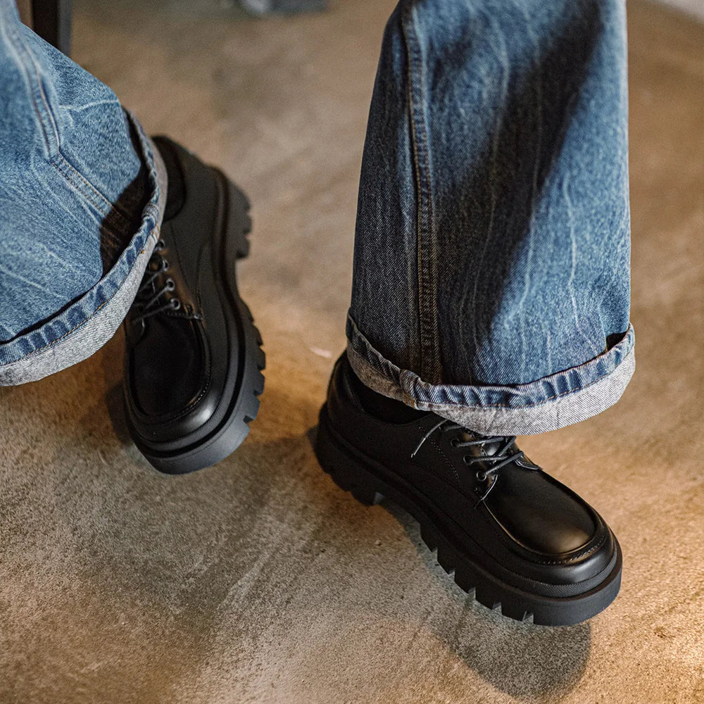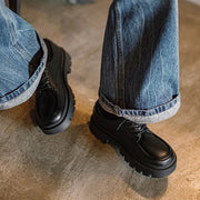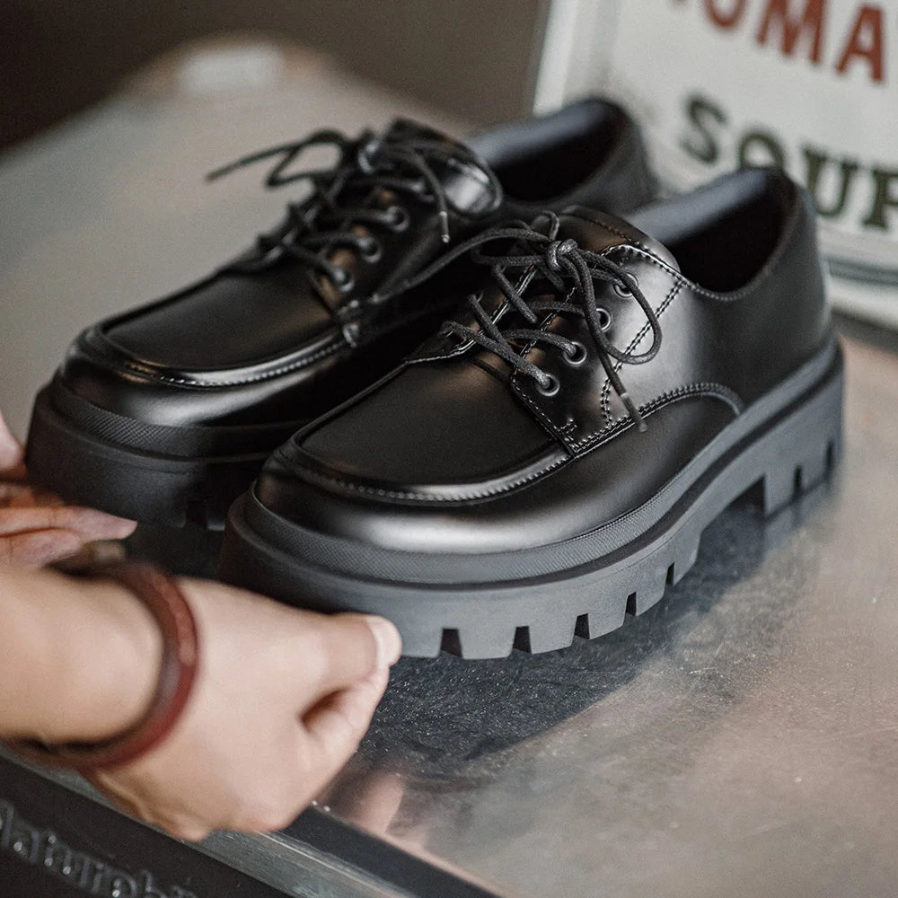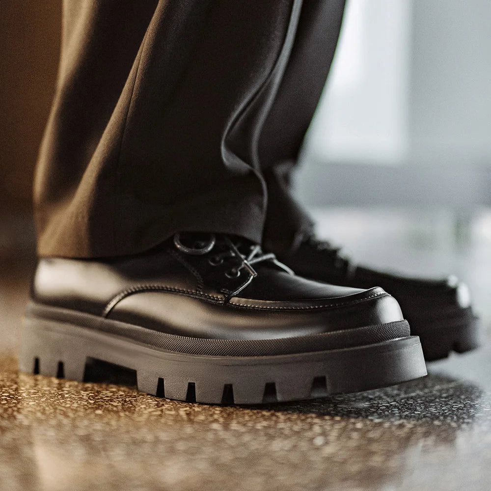 Introducing the Dapsimni Apron Toe Lace Up Shoes - the epitome of luxury footwear. These elegant shoes feature a round apron toe and lace up design, paired with a chunky sole and textured tread for added sophistication. Crafted with premium leather and a durable rubber outsole, these shoes are the perfect blend of style and functionality. Elevate your wardrobe with these exclusive shoes.