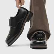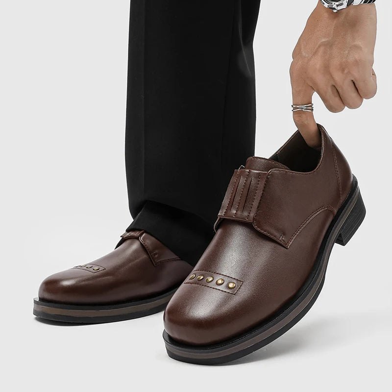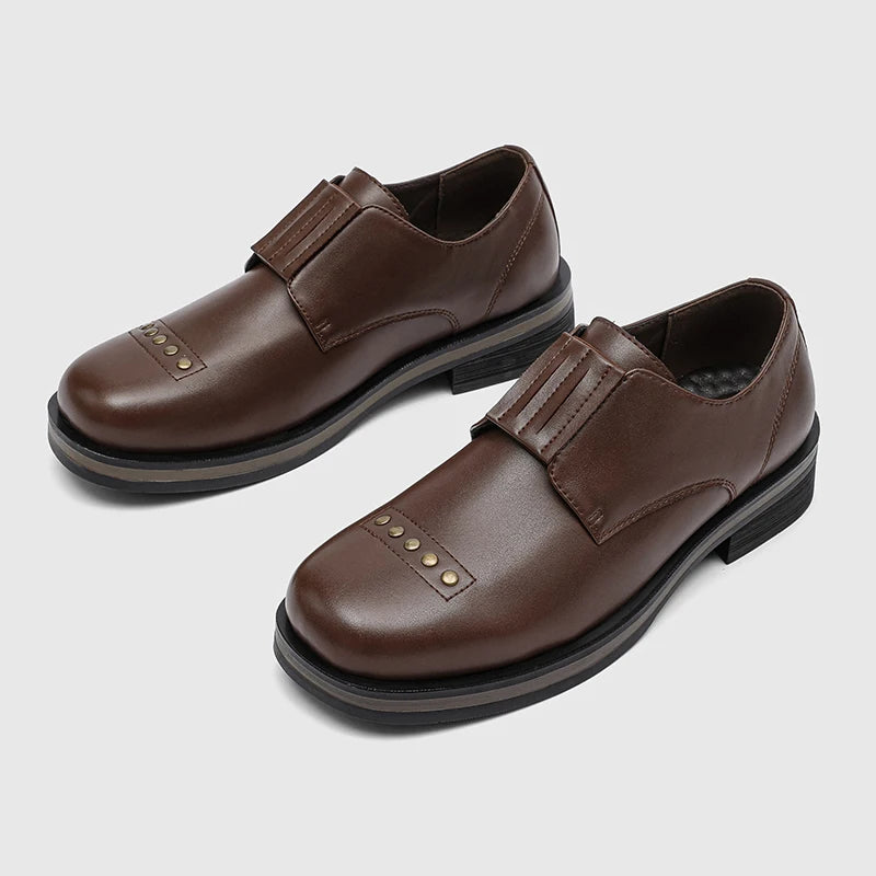 Style the Myeongdong Rivet Loafers with pleated wide-leg trousers and a boxy shirt for a Seoul streetwear edit, or pair with raw denim and a utility jacket for a sharper downtown look.