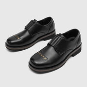 Inspired by the energy of Seoul’s busiest shopping district, the Myeongdong Rivet Loafers rework a classic slip-on silhouette with bold metal rivet detailing across the vamp. Crafted in a smooth faux leather finish with a low stacked sole, they balance timeless loafer design with streetwear attitude. Easy to style up or down, they deliver a sharp edge to both tailored and casual looks.