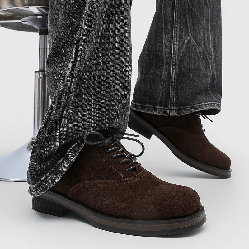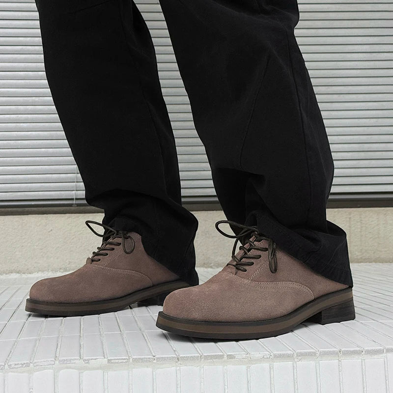 Pair the Samcheong Suede Derby Shoes with wide-leg tailored trousers and a crisp white shirt for a minimalist Seoul-inspired outfit. For a casual streetwear edge, style them with relaxed-fit denim, a boxy knit, and a utility jacket.