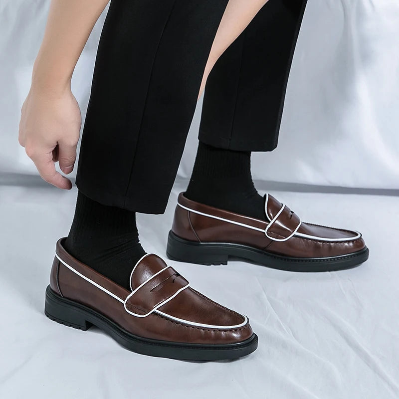 Expertly crafted for a sleek and polished look, the Samjuk Monochrome Sleek Penny Loafers feature monochrome piping detailing for a touch of sophistication. The round toe and textured tread provide comfort and stability, while the PU upper and rubber outsole ensure durability. Slip on these classic loafers with a chunky sole for effortless style.