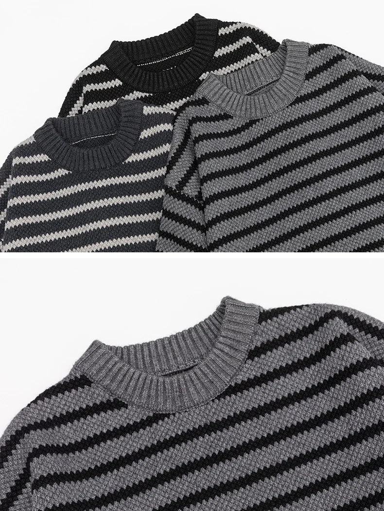 The Textured Stripe Crewneck is a clean, easy-to-wear knit with a raised diagonal stripe pattern that adds depth without feeling busy. Made from a soft, midweight yarn blend, it offers structure while staying comfortable for everyday layering. Ribbed trims keep the silhouette neat, and the muted colour palette gives it a versatile, modern streetwear feel.