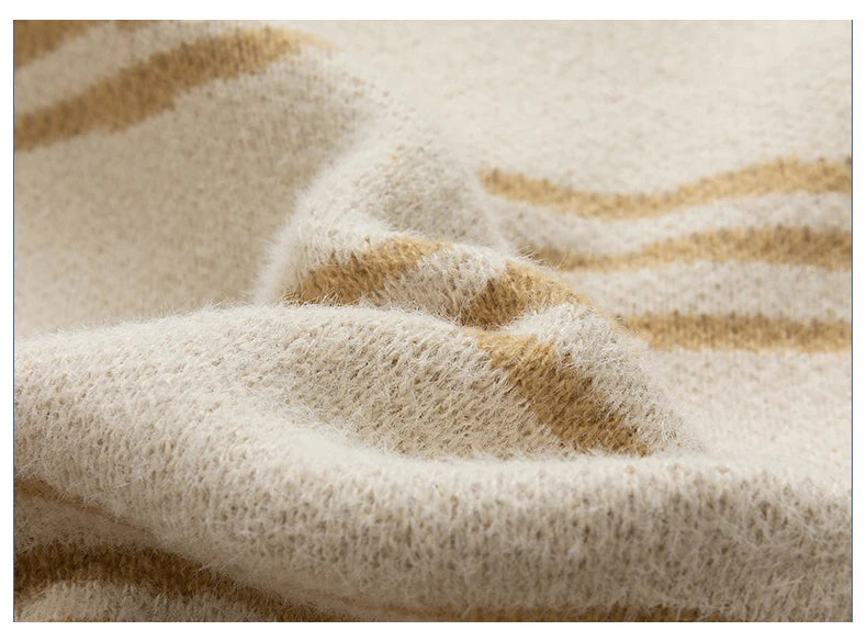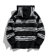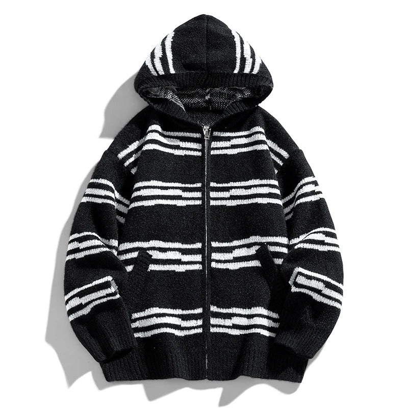 The Abstract Stripe Zip-up Hooded Sweater takes a classic knit hoodie and reimagines it with a bold, digital-inspired stripe pattern. With its soft-touch knit and relaxed silhouette, it balances comfort with a directional edge.