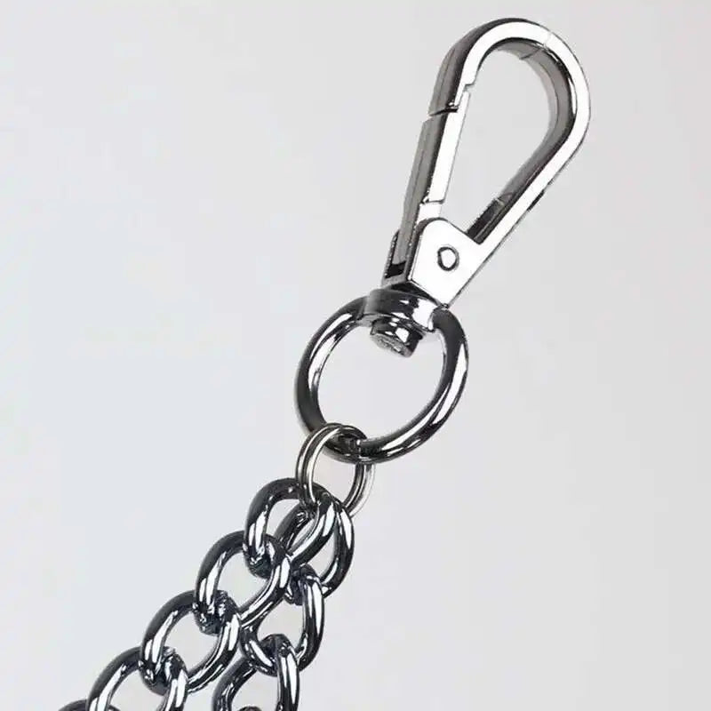 Add instant edge to your fits with the Double-Layer Belt Chain. Designed to clip easily onto belt loops, this two-tier chain brings a streetwear and punk-inspired accent to any look. Lightweight but durable, it works as both a style statement and a functional piece for keys or small accessories.