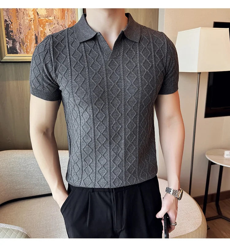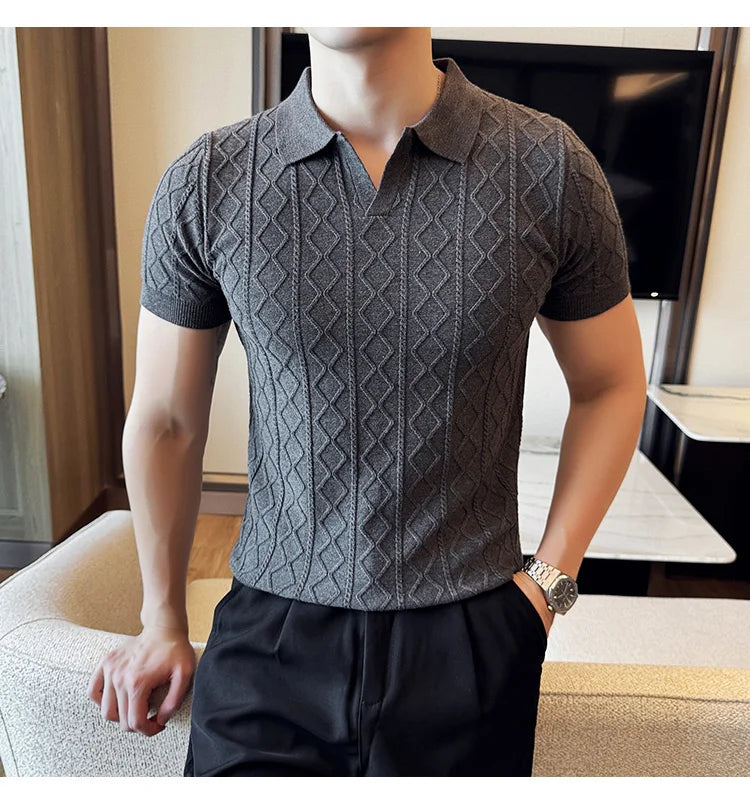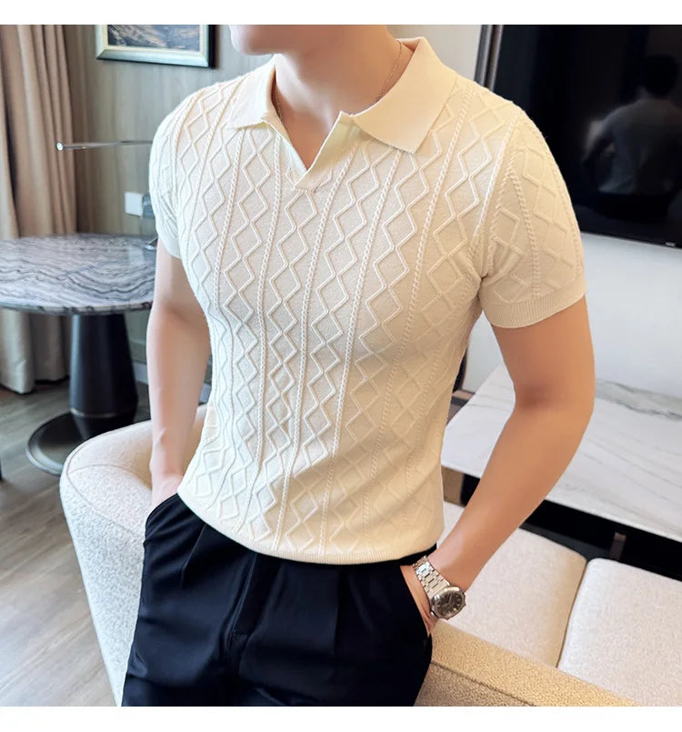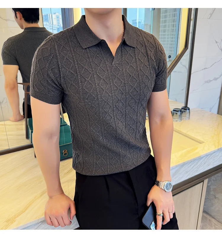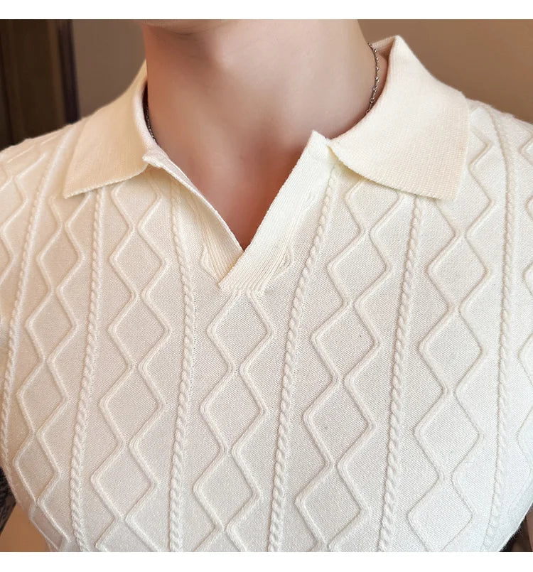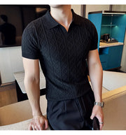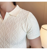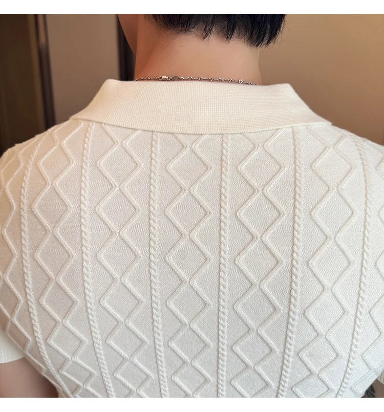 A modern take on a heritage classic. This short-sleeve polo is designed with a raised cable knit texture, giving it a structured yet breathable feel. The retro-inspired collar and open placket balance smart styling with casual versatility, making it an easy piece to dress up or down. Crafted from a soft, durable blend, it holds shape while staying comfortable for all-day wear.