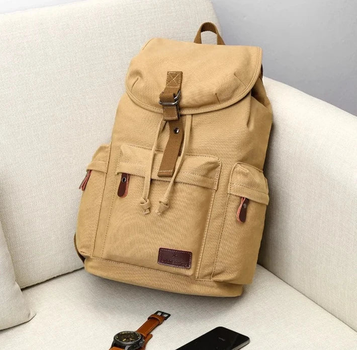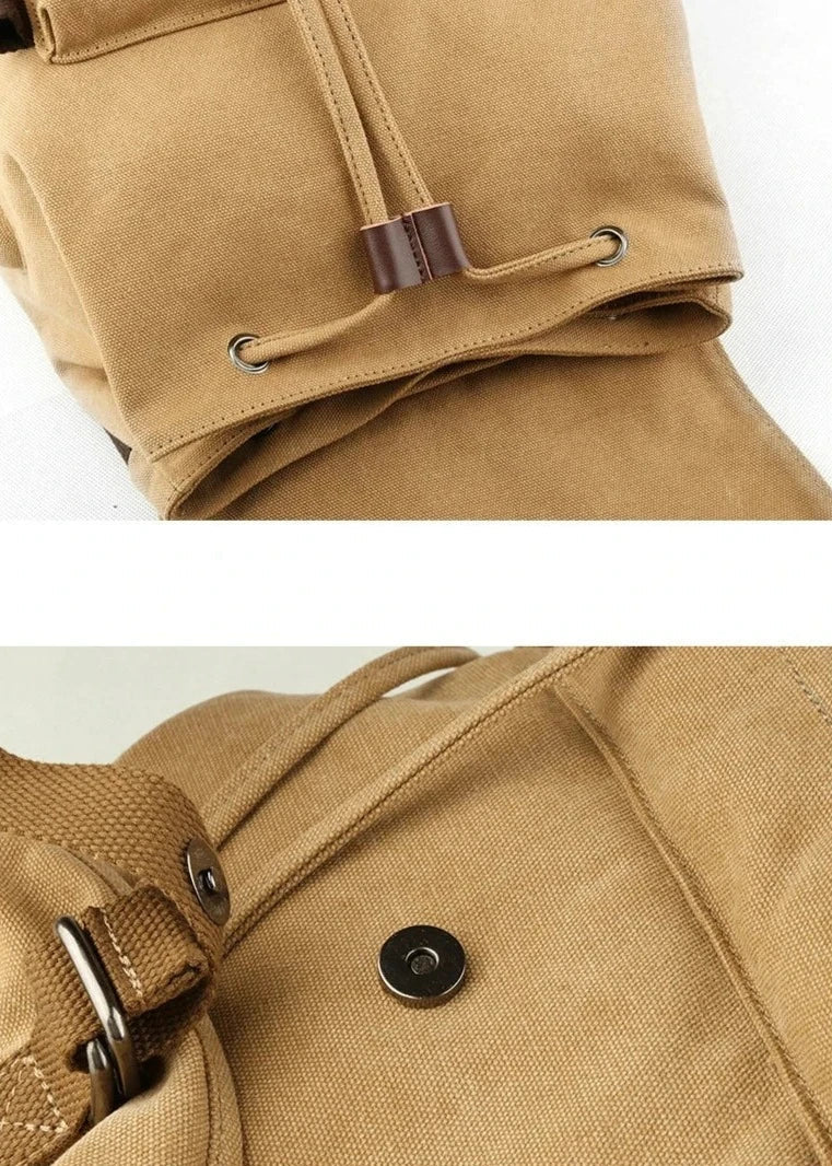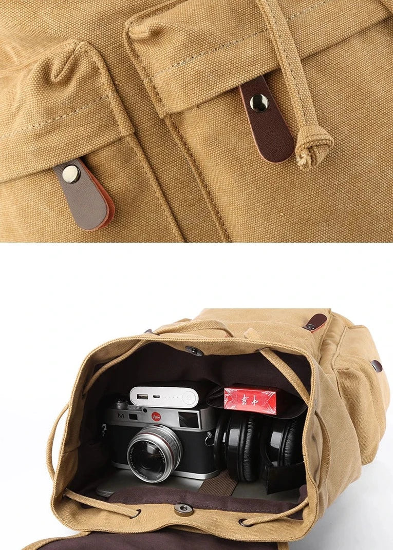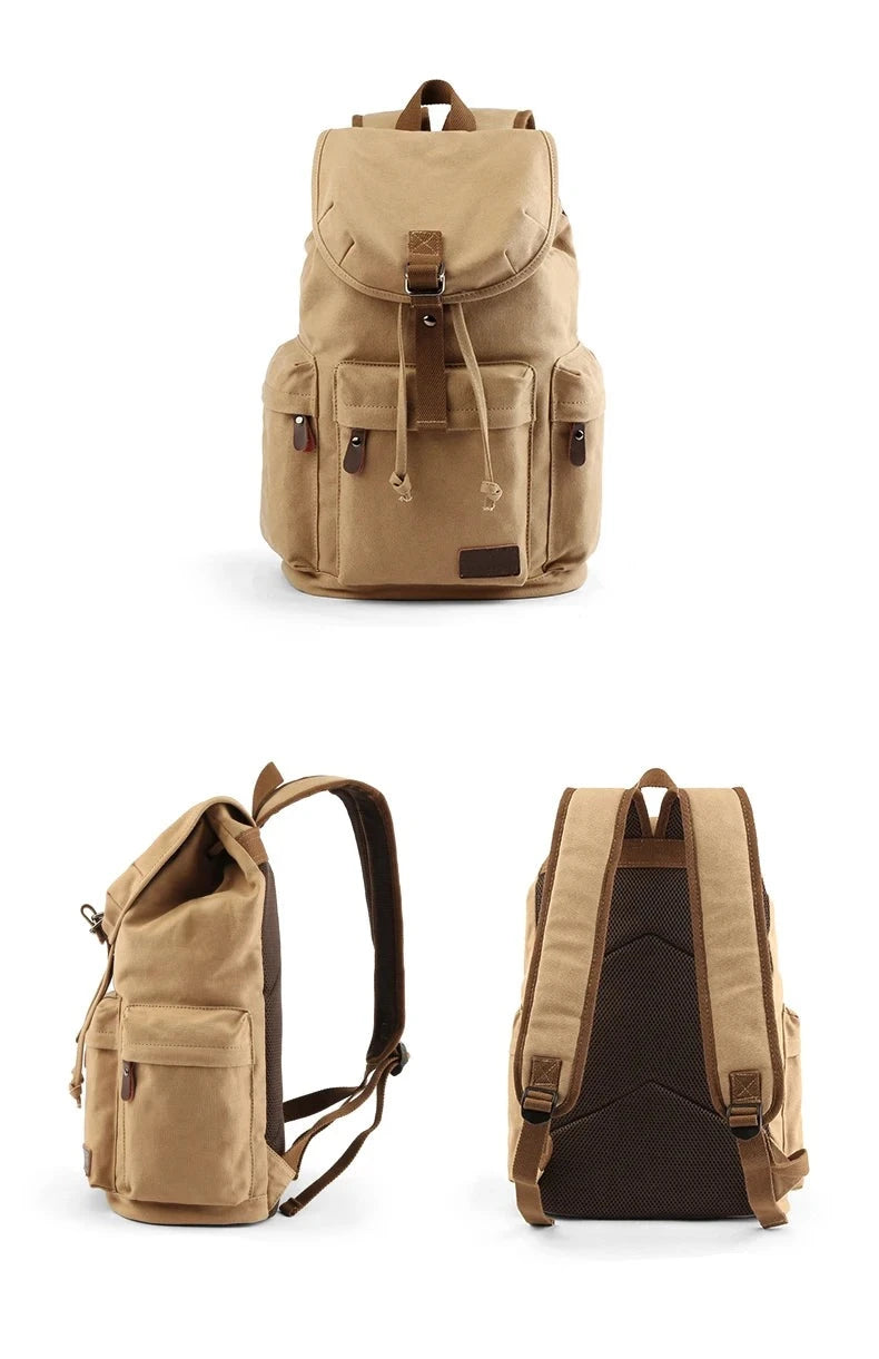 Get ready to rock your vintage style with our Canvas Backpack! Made with 100% cotton outer and contrast cotton lining, it's perfect for your 17" laptop and comes with adjustable padded straps for ultimate comfort. With multiple pockets, drawstring and magnetic button closure, and a cool PU badge, it's your new favorite accessory.