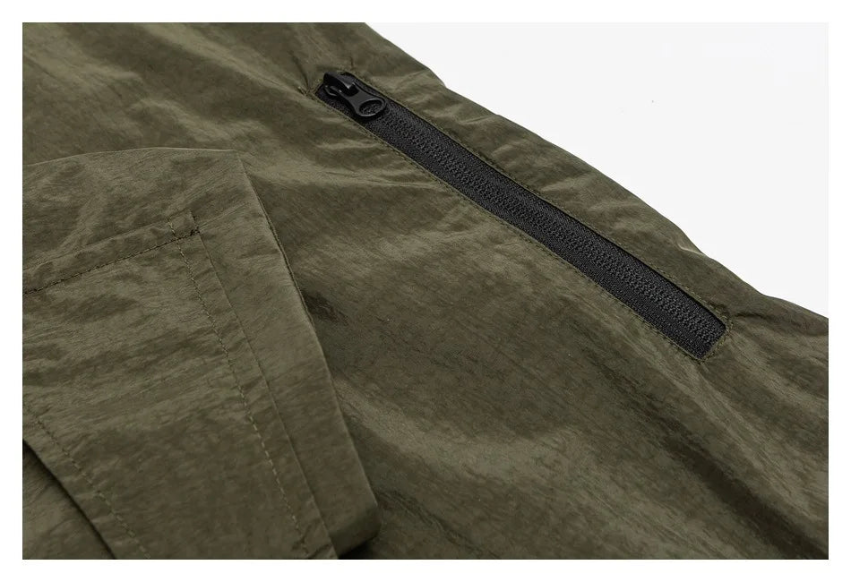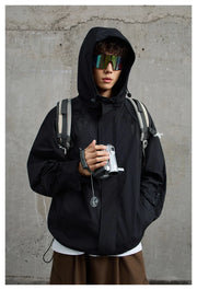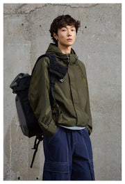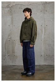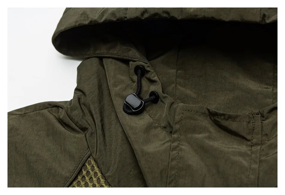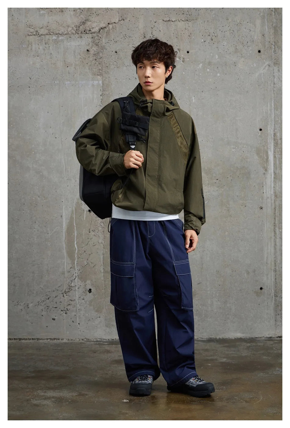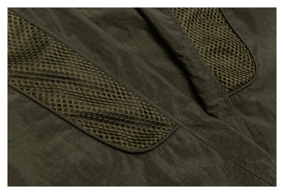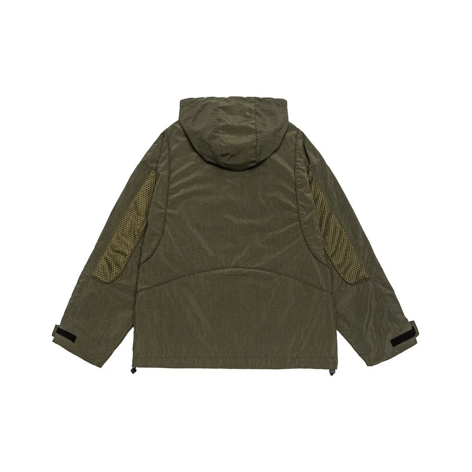 A lightweight archival-inspired layer built with a military edge. Designed with mesh ventilation panels and a structured hood, this windbreaker blends Seoul streetwear energy with utilitarian function. The relaxed cut and tactical detailing make it an easy outer layer for both city wear and transitional weather.