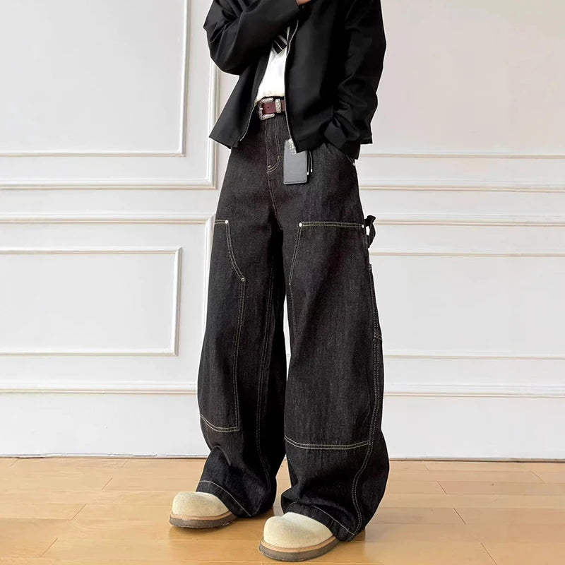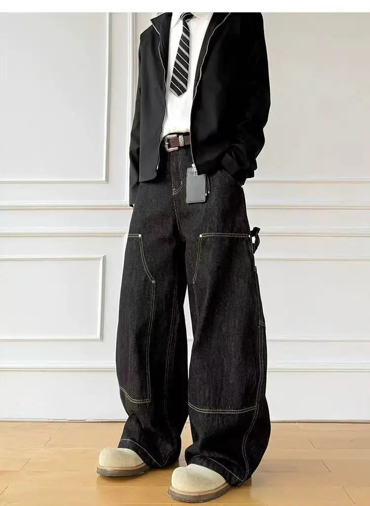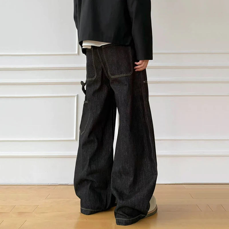 Built with a bold silhouette, the Dark Rinse Wide Carpenter Jeans balance workwear grit with modern streetwear energy. The deep rinse finish gives a clean, refined base while contrast stitching and oversized utility panels highlight their archival carpenter roots. Designed with exaggerated volume and wide legs, they bring both statement and comfort to everyday wear.