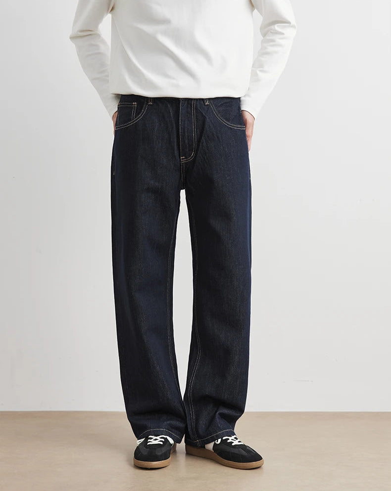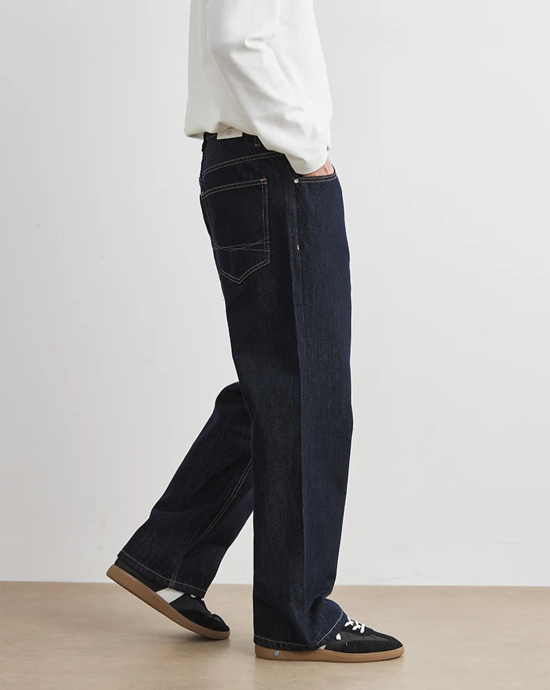 A refined staple with a streetwear edge, the Deep Rinse Classic Jeans deliver timeless denim in a relaxed straight-leg cut. Designed with clean lines and subtle contrast stitching, they bring versatility to both minimal and styled-up wardrobes. The deep indigo rinse gives a polished finish while maintaining a laid-back feel.