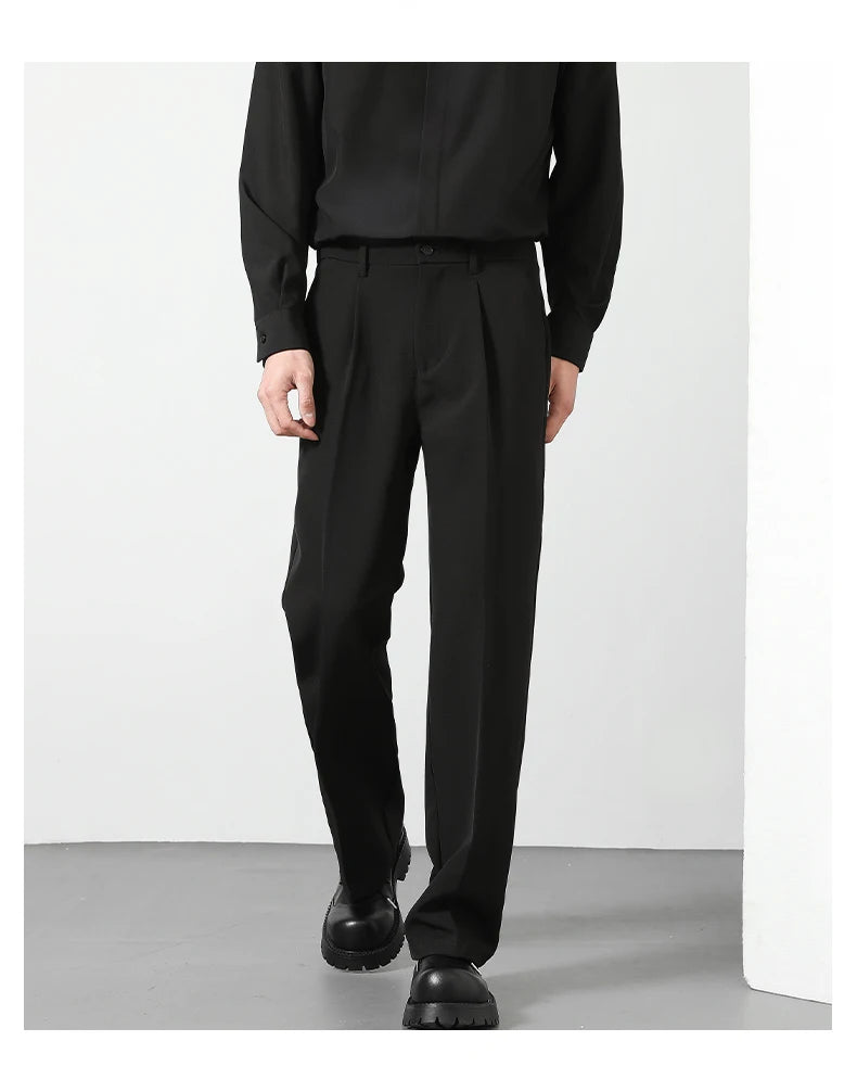 Clean, versatile, and refined, the Essential Pleat Trousers bring effortless structure to your rotation. Designed with a straight leg and subtle front pleats, they balance sharp tailoring with everyday comfort. The polyester-elastane blend offers stretch and ease of movement, making them equally at home in minimal streetwear looks or elevated casual fits.