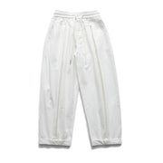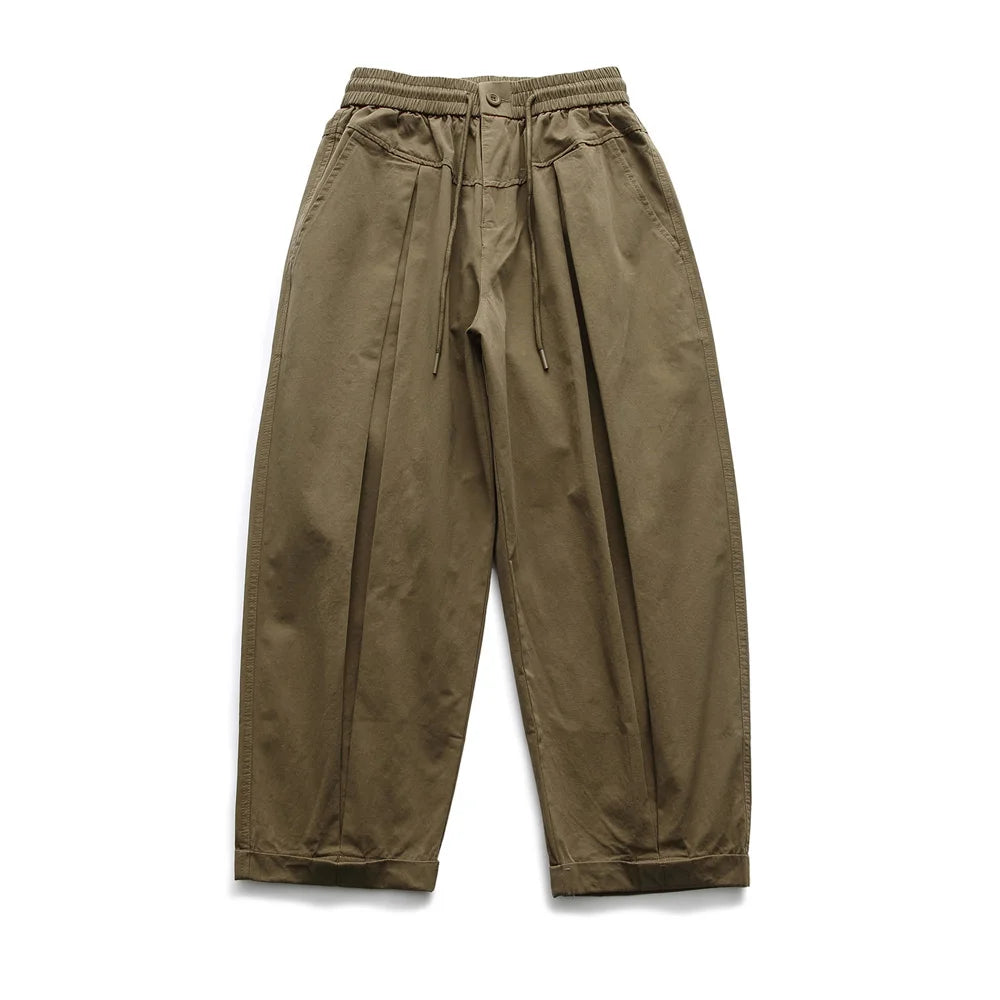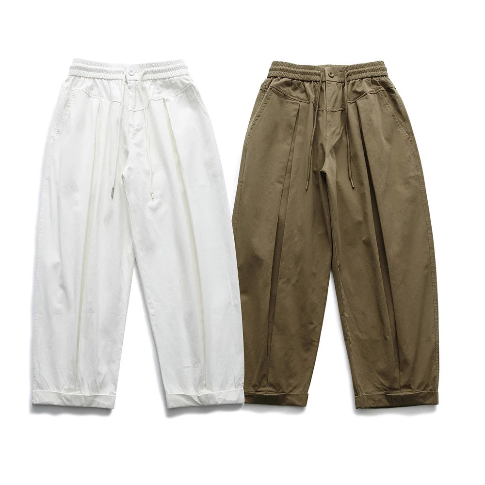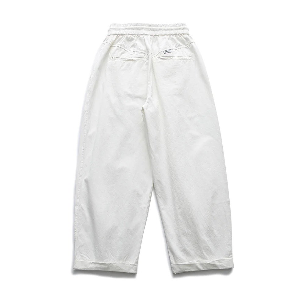 A bold, sculptural take on everyday trousers. Designed with inverted pleats that add structure and volume, these wide trousers create a balloon-inspired silhouette with a relaxed yet elevated feel. An elasticated waistband with drawstring keeps them comfortable, while the cropped length and cuff detail give them a clean finish.