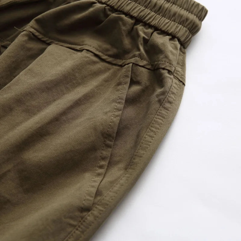 - Elasticated waistband with button and drawstring closure