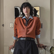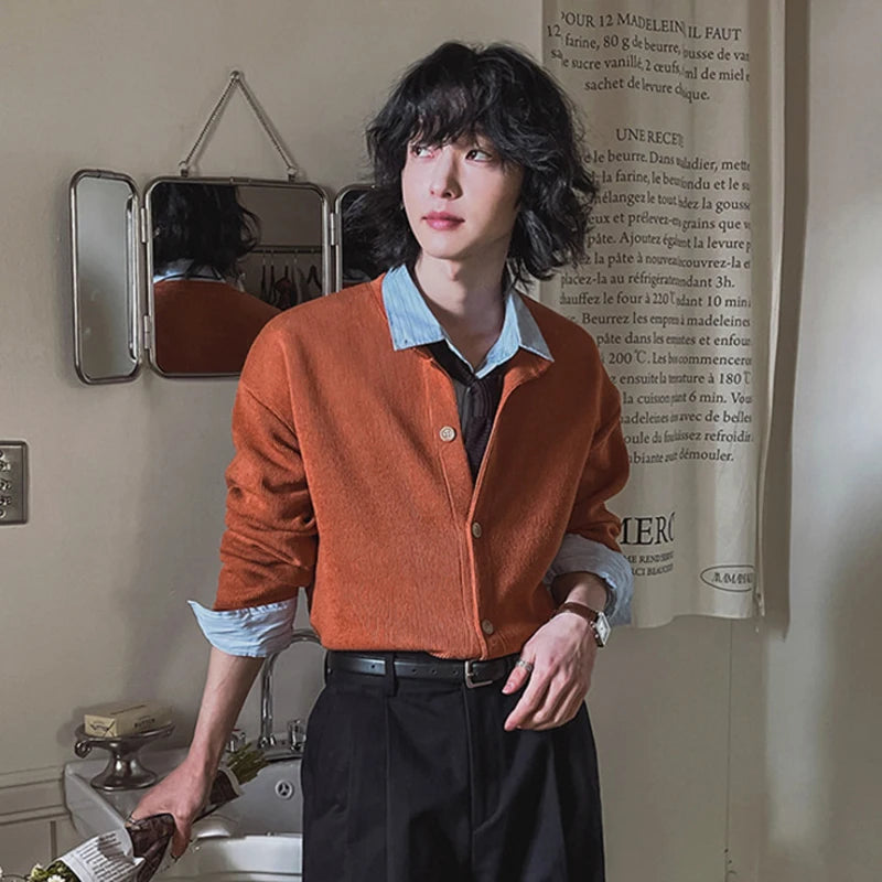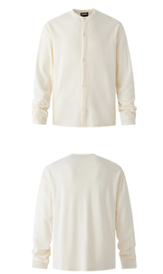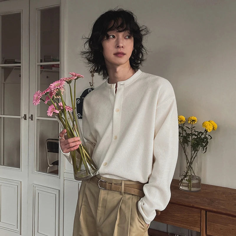 Clean, minimal and effortlessly versatile, the Grandad Collar Jersey Cardigan is a staple piece for any K-style wardrobe. The collarless neckline gives it a refined yet laid-back edge, while the soft jersey fabric keeps it lightweight and comfortable. Easy to throw on over a tee or style with tailored trousers, it brings the perfect balance of casual and sharp.