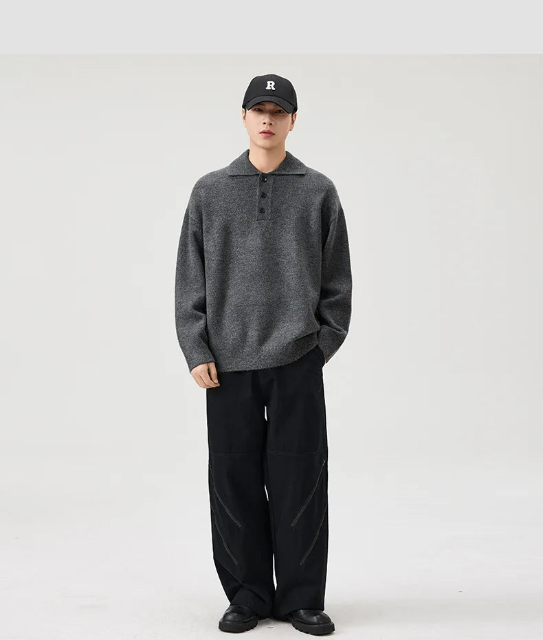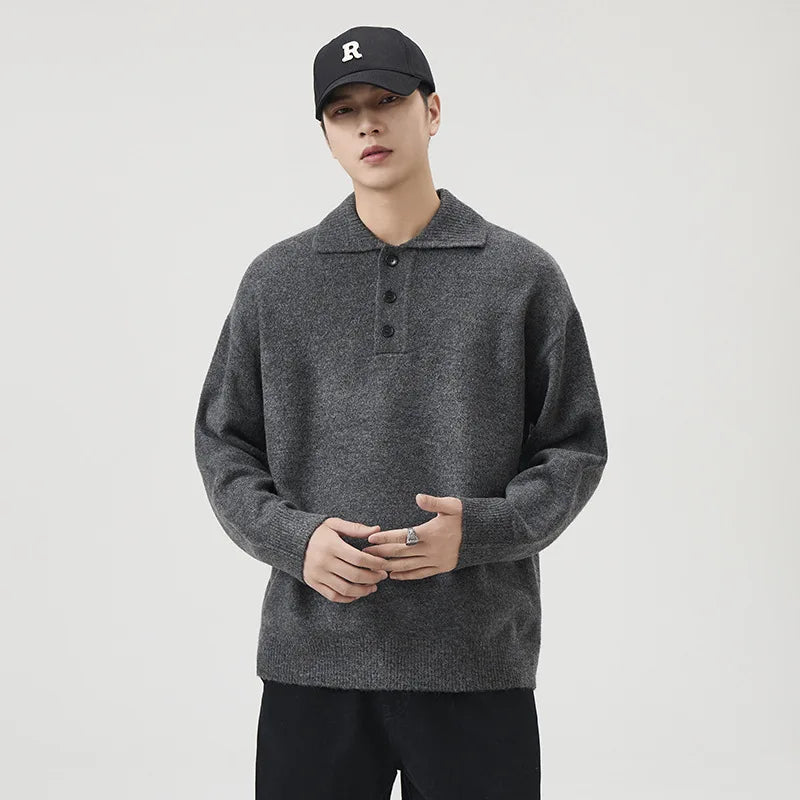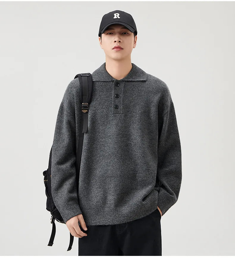 A timeless layer with a relaxed edge, this knitted polo sweater blends casual ease with refined detailing. Crafted from a soft acrylic-polyester knit, it delivers everyday comfort while holding its shape. The button placket and structured collar add a touch of polish, making it versatile enough to move between lounge, street, and smart-casual looks.