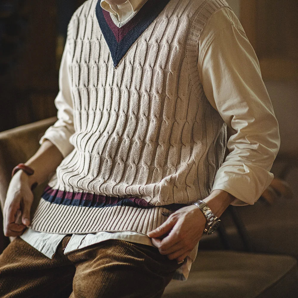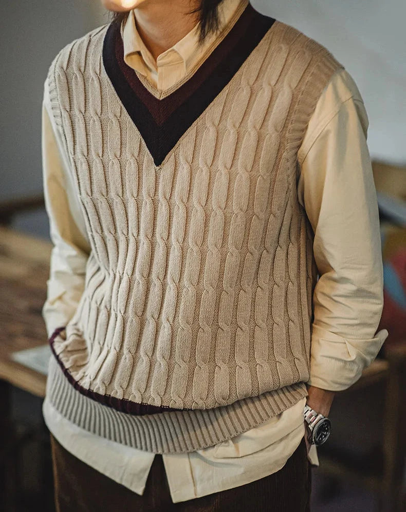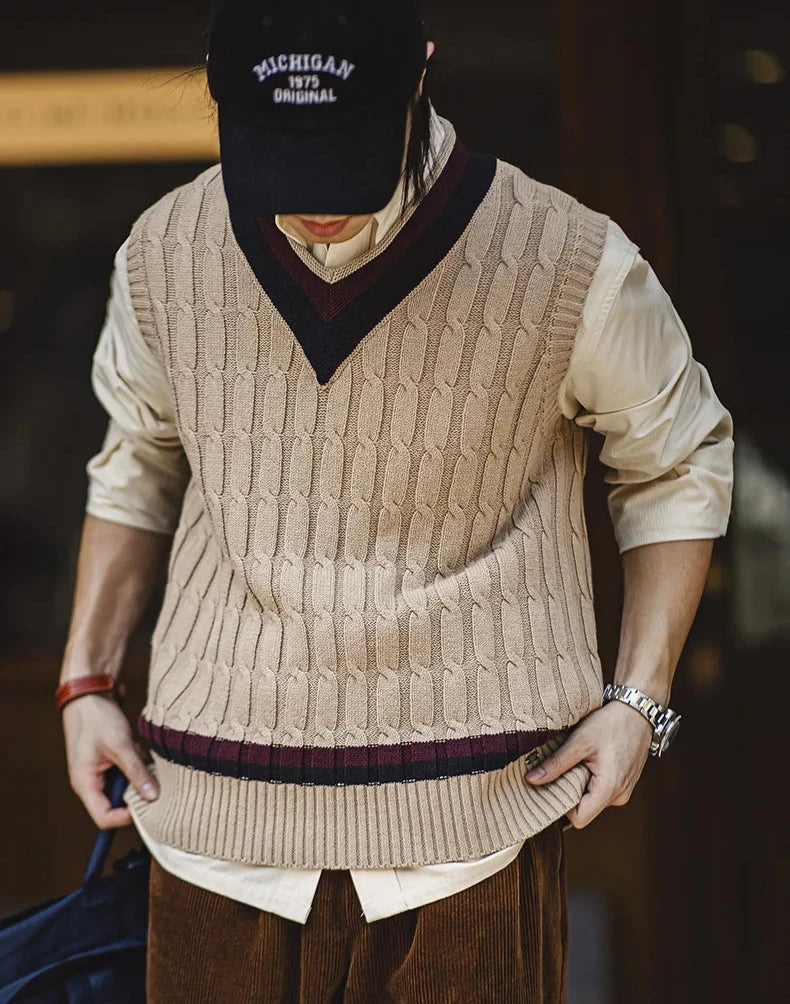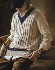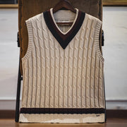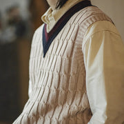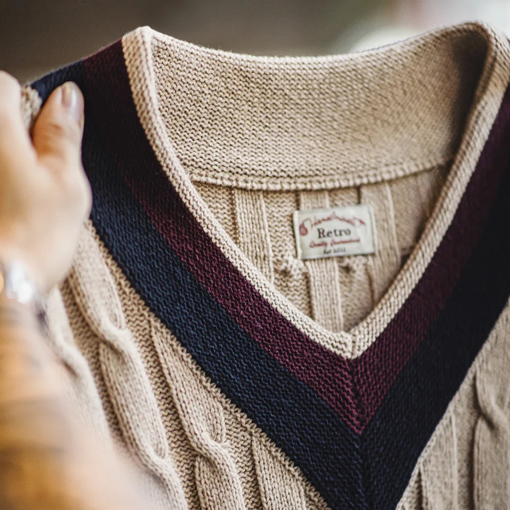 Made from a blend of cotton and acrylic, this Retro Style V-Neck Sweater Vest is the perfect layering piece. Its sleeveless style and cable knit design add a touch of texture, perfect for layering up.