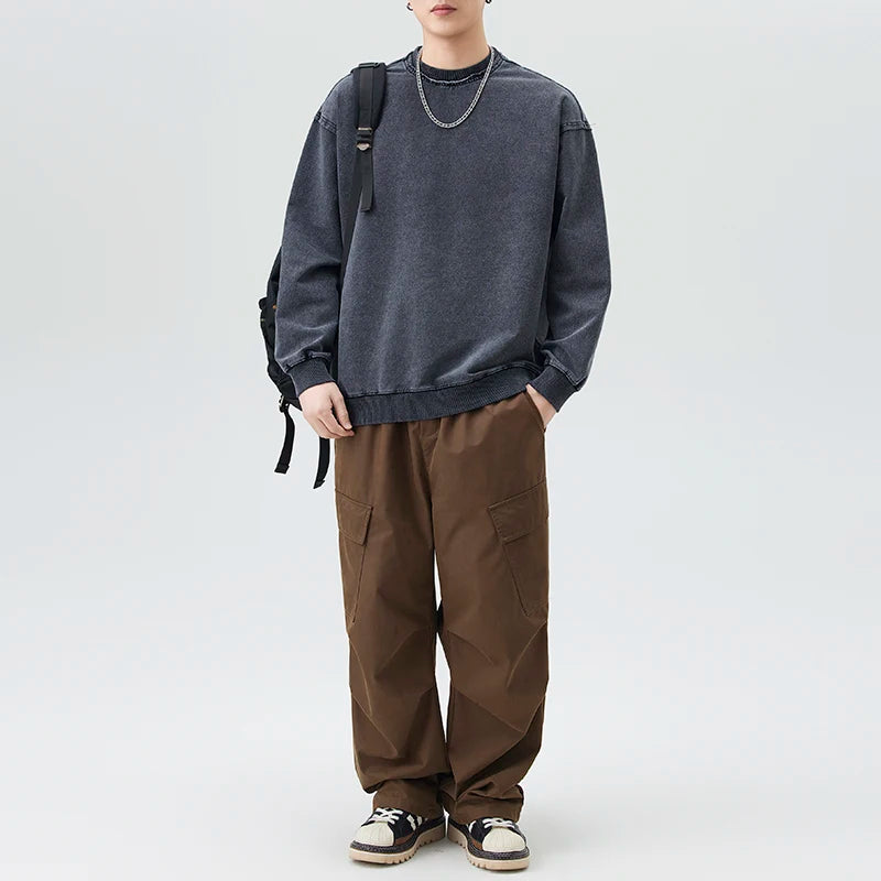 A laid-back staple with lived-in character, the Vintage Wash Crew Sweatshirt is cut from a cotton-poly blend with a soft handle. The vintage wash finish gives it a subtle faded look, while the relaxed silhouette and ribbed trims keep it easy to style day to day. Designed for layering or wearing solo, it’s a Seoul streetwear twist on a timeless crew.