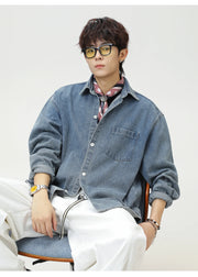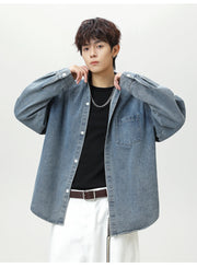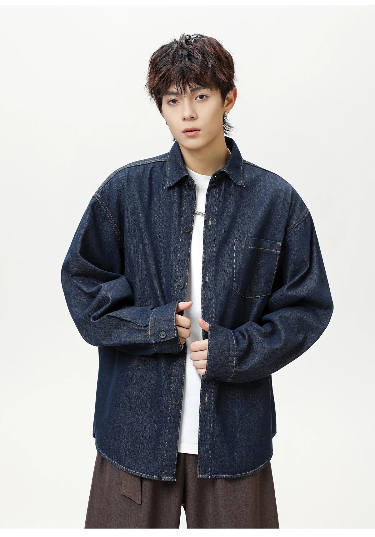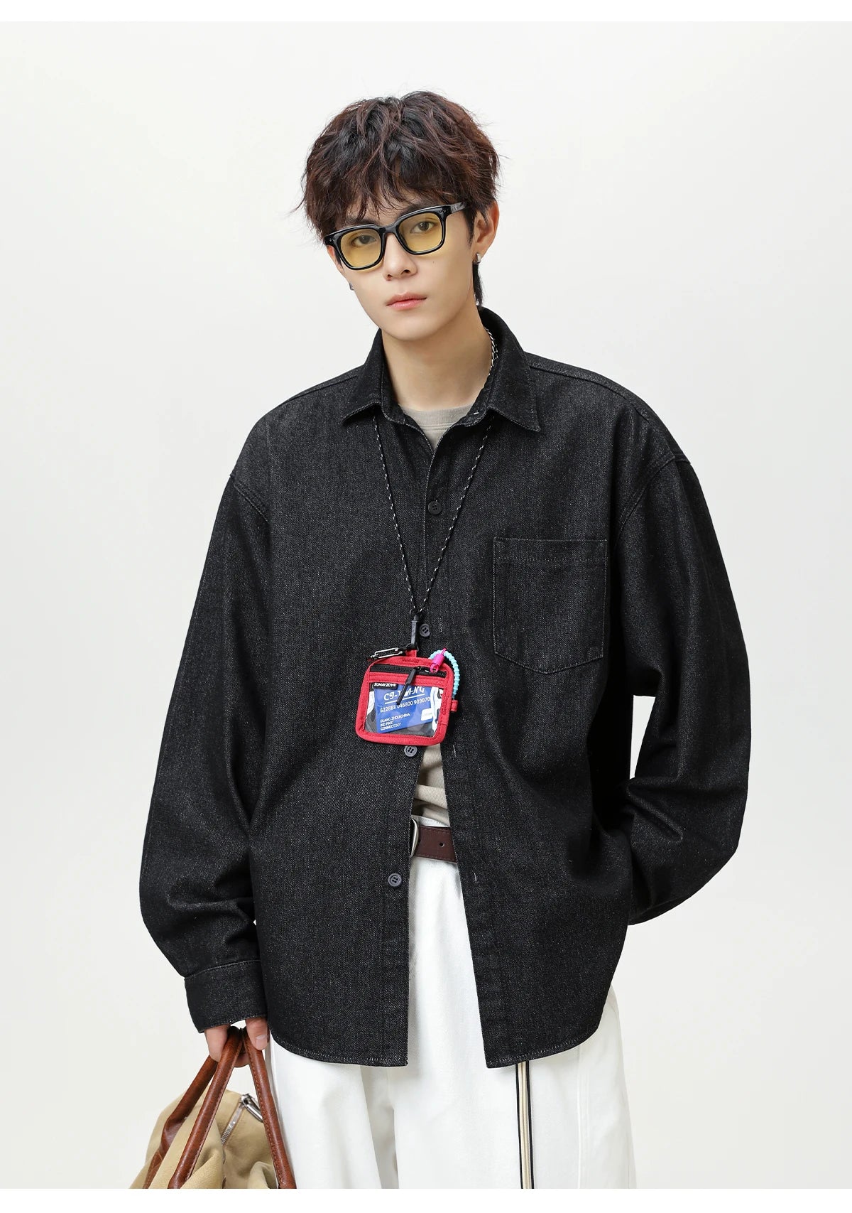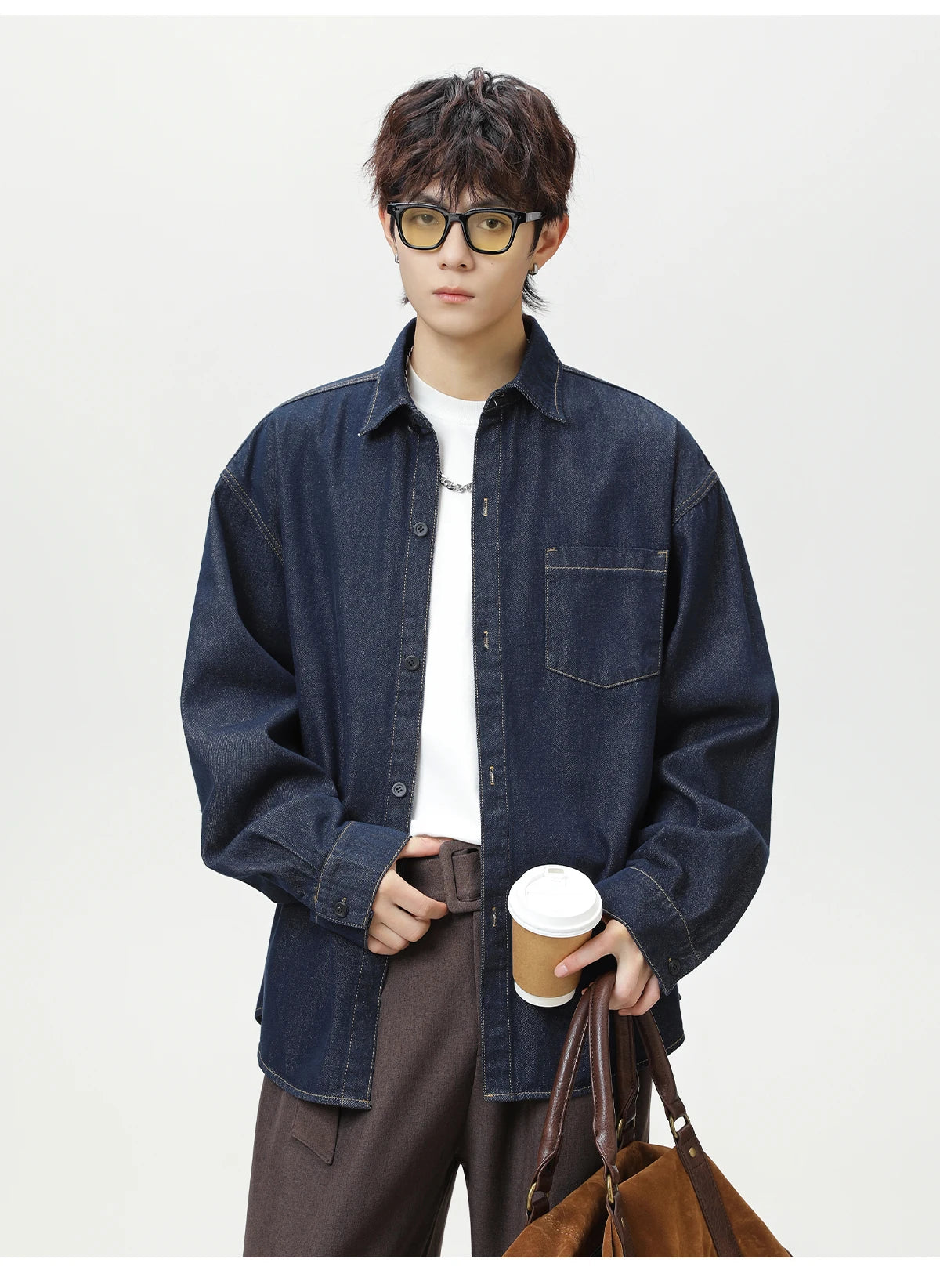 A timeless staple with a worn-in feel, the Vintage Wash Denim Shirt is crafted from a cotton-poly blend with a soft handle and structured drape. Cut in a relaxed fit, it features a button-through front and single chest pocket, while the vintage wash finish brings a subtle faded character that feels lived-in from day one. Versatile as a shirt or lightweight overshirt, it’s a Seoul-inspired take on classic denim.