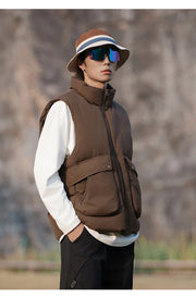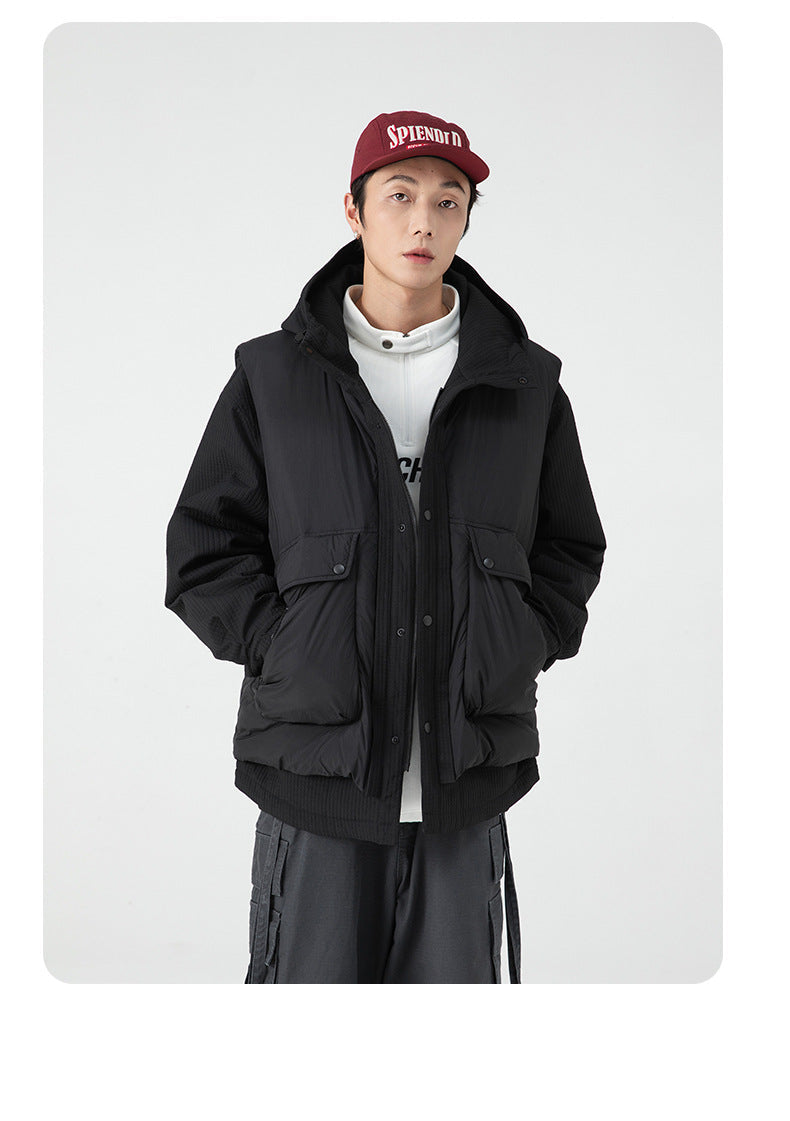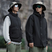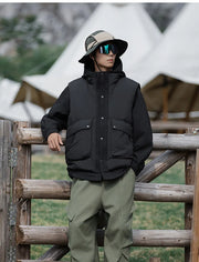 A multifunctional outerwear piece built for adaptability and style. The 3-in-1 Utility Jacket combines a detachable padded vest with a water-resistant, windproof shell, offering versatile layering options for changing weather. Filled with 50% down for lightweight warmth, it delivers comfort without compromising on street-ready edge. Wear it as a jacket, as a standalone vest, or layer them together for maximum insulation.