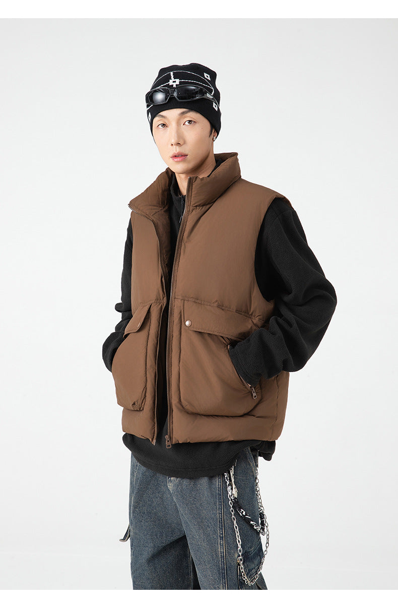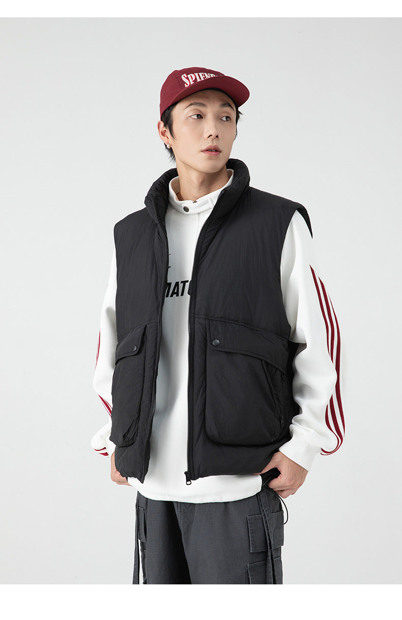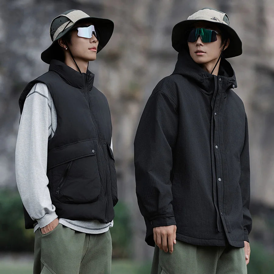 Pair with wide cargo trousers or parachute pants and chunky sneakers for an urban utilitarian look, or layer over a hoodie and jeans for casual street styling. Finish with a beanie or cap to lean into the Seoul streetwear vibe.