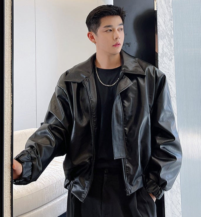 Cropped Faux Leather Jacket