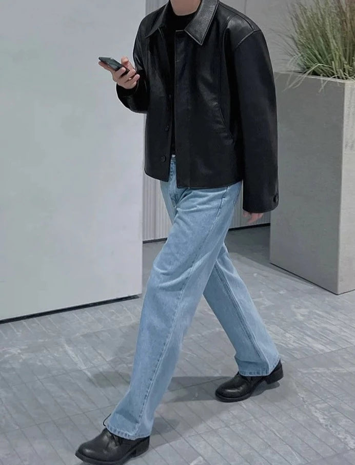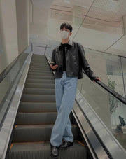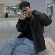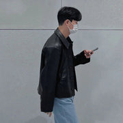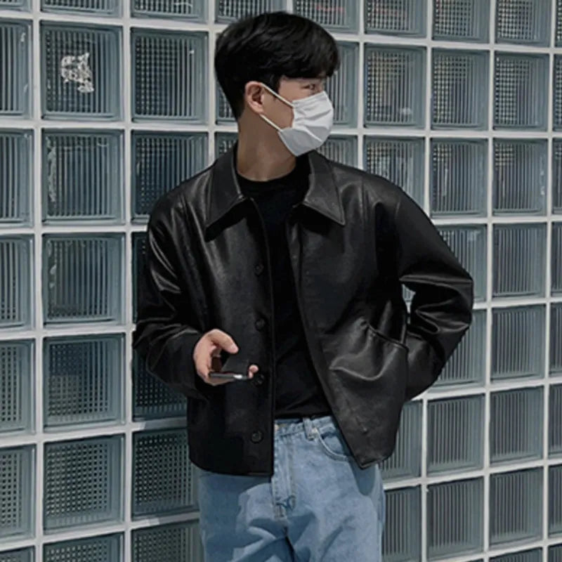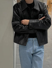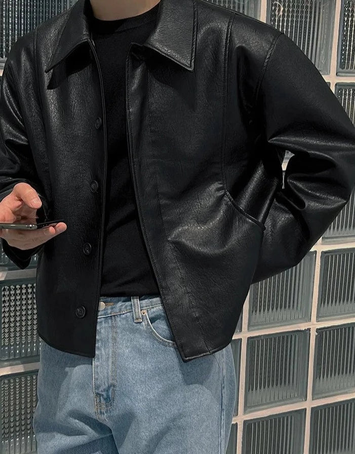 Introducing our Cropped Minimal Faux Leather Jacket. Made with premium faux leather and a luxurious polyester lining, this jacket exudes sophistication and exclusivity. The concealed button fastening, spread collar, and button cuffs add an elegant touch. With a short length and convenient side pockets, this jacket is both elegant and practical.