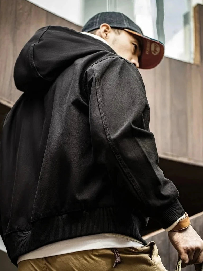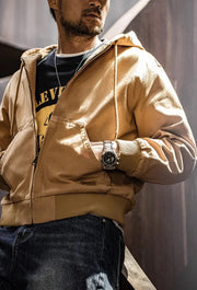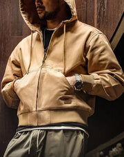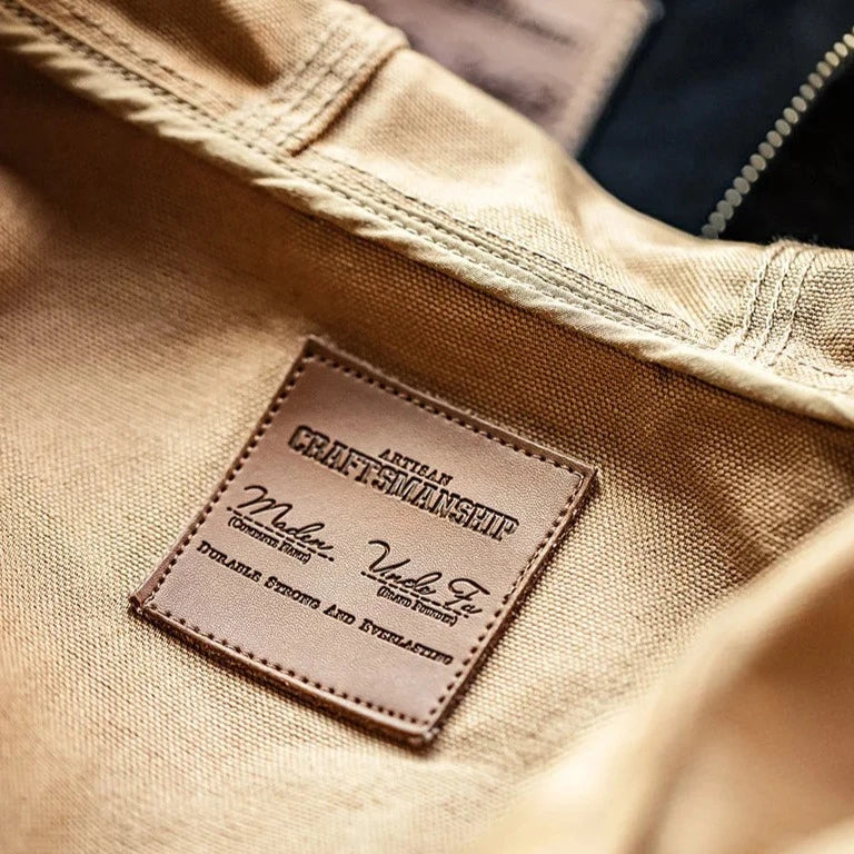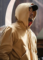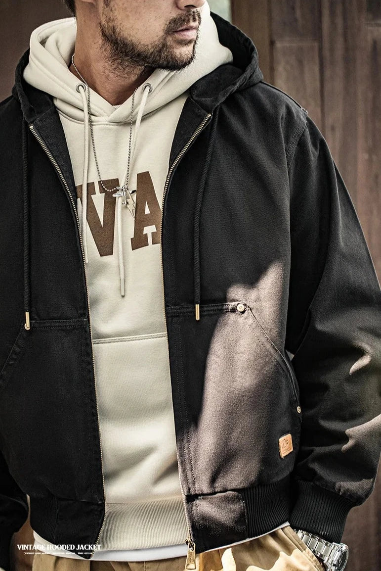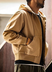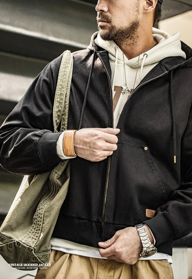 Indulge in luxury and functionality with our Hooded Canvas Workwear Jacket. The cotton canvas material and cotton lining provide comfort and durability. With a standard fit, zip fastening, ribbed trims, and side pockets, this jacket is both stylish and practical. The fully lined hood and draw cords add a touch of sophistication to the classic workwear style.
