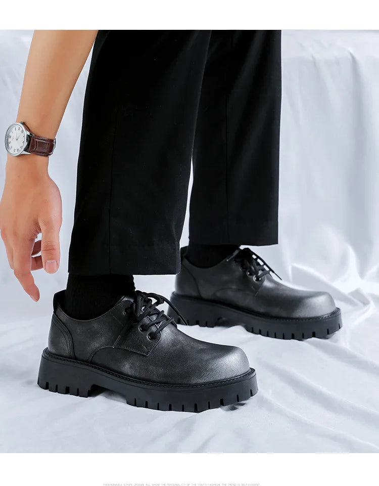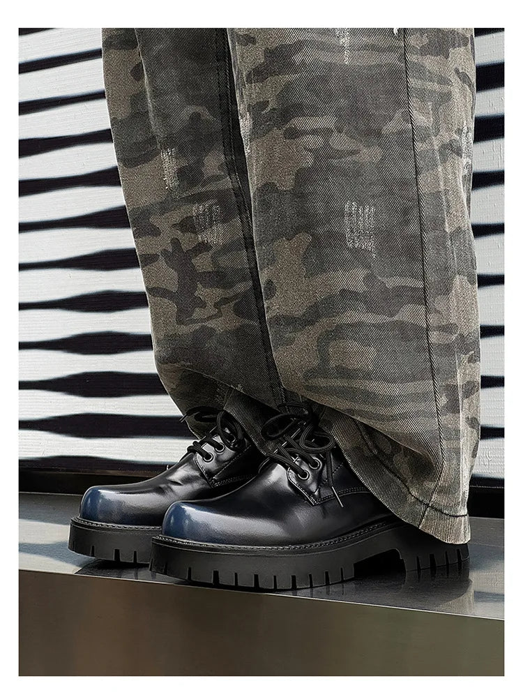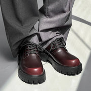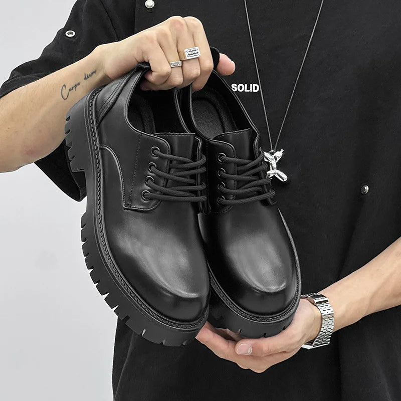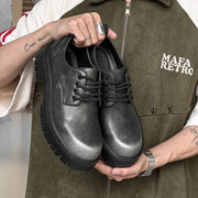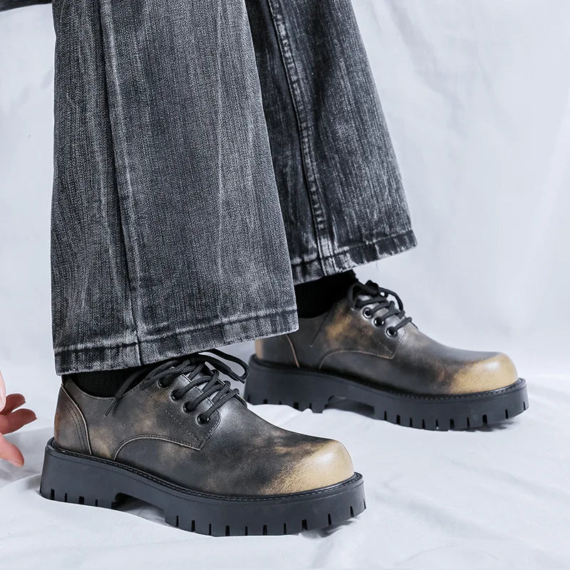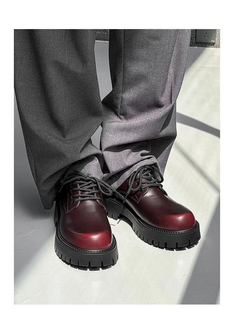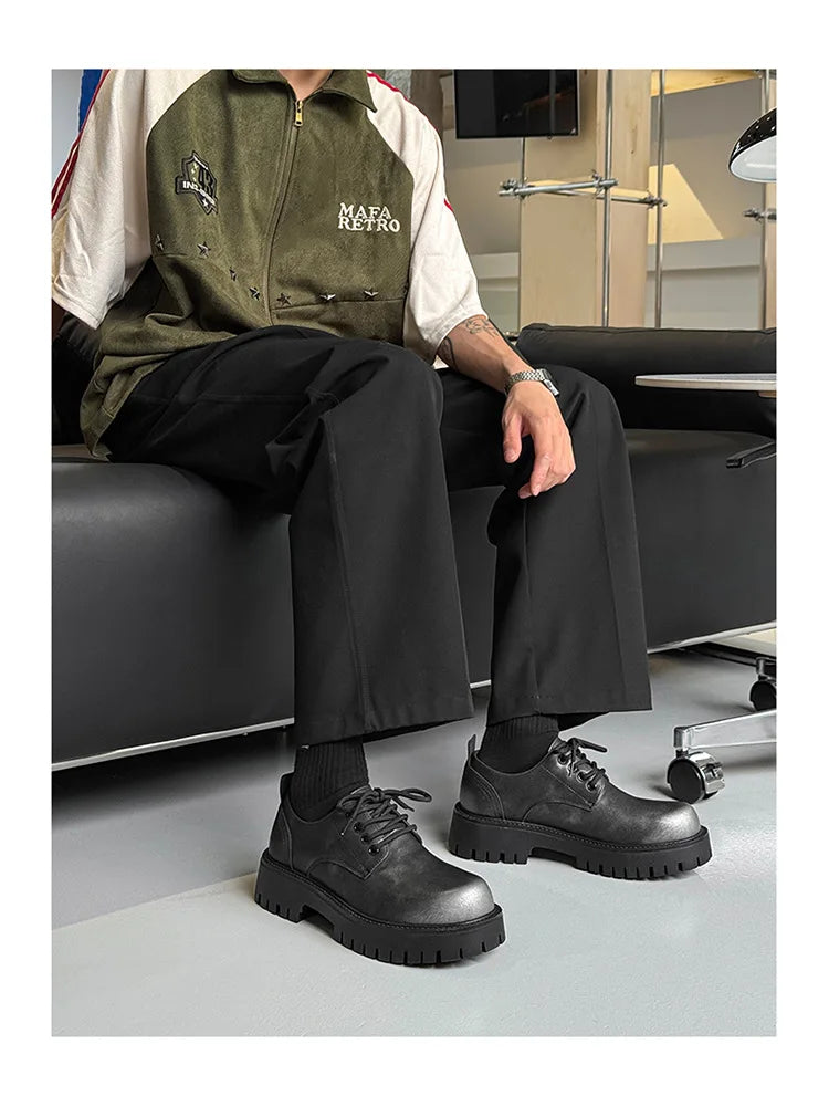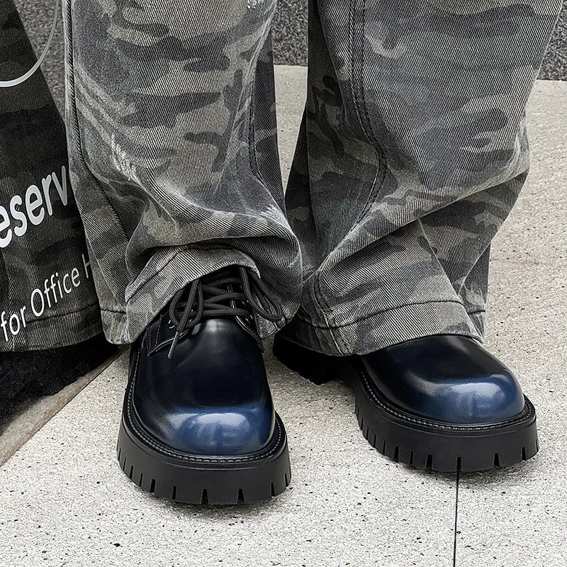 Bring the edge with the Yangcheon Rub Off Lug Sole Derby Shoes, inspired by Seoul’s urban streets. Built with a chunky lug sole and distressed rub-off finish, these are a bold twist on a classic derby. Equal parts industrial and stylish, they’re perfect for grounding wide-leg denim, cargo trousers, or tailoring with a streetwear attitude.