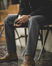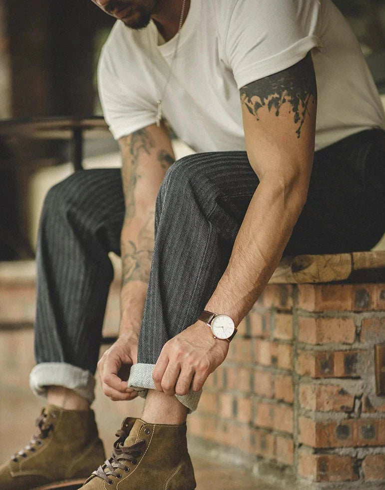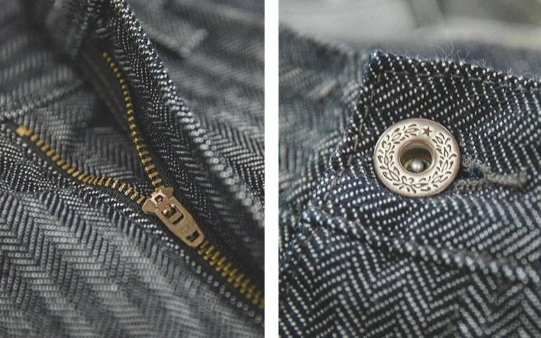 Elevate your wardrobe with our Hereingbone Tapered Trousers. Made from 100% cotton, they offer a luxurious feel and lasting comfort. Featuring side and back pockets with a coin pocket, and a herringbone pinstripe pattern, these trousers are the epitome of sophistication. The zip and button fly fastening and belt loops add a touch of practicality to this refined look.