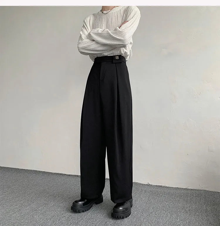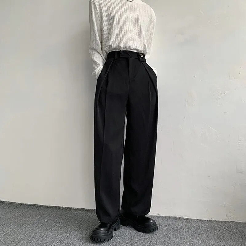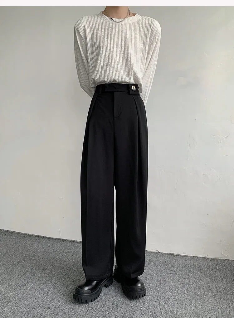 Elevate your wardrobe staples with these sophisticated Polyester Pleat Detail Tailored Trousers. Crafted for superior fit and comfort, these trousers feature metal clasp zip up fastening, a unique front belt pouch, side pockets, belt loops, and subtle front pleat detail for a luxurious look.
