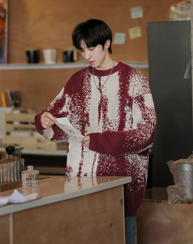 The Abstract Print Crew Neck Sweater boasts an eye-catching all over design. With a comfortable crew neck and drop shoulder fit, it is finished off with solid ribbed trims.