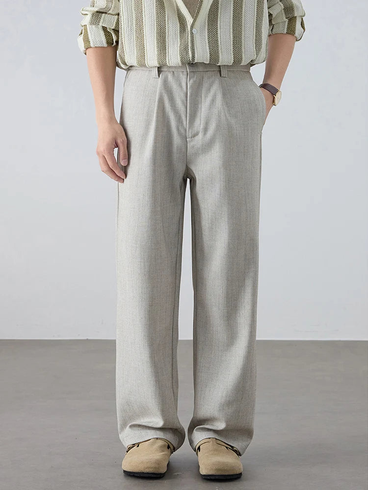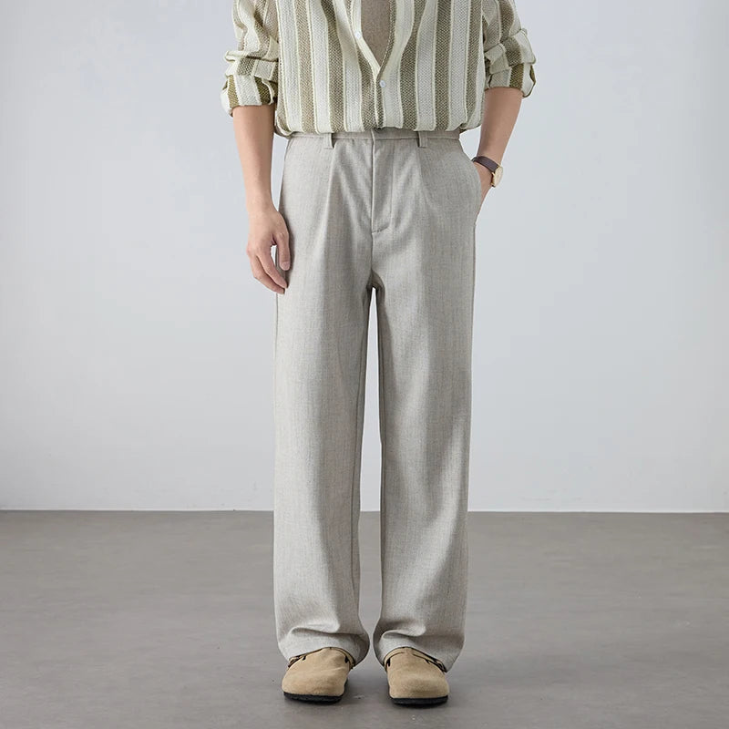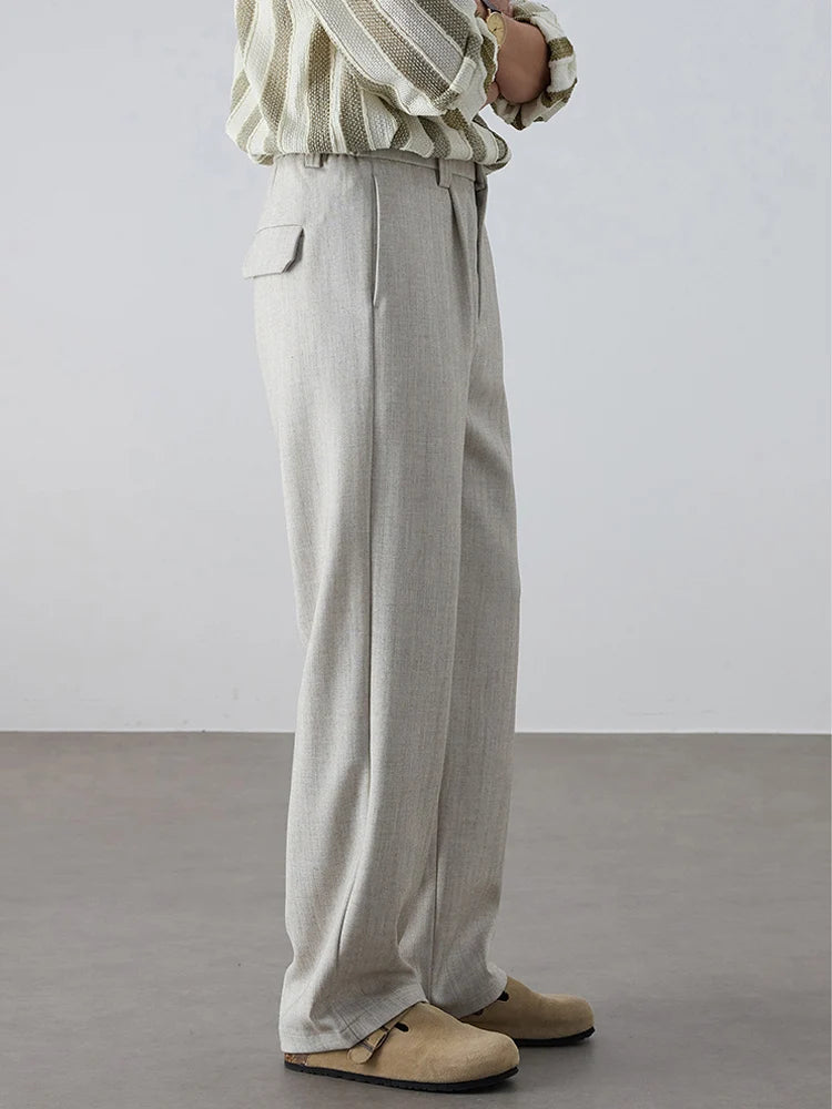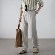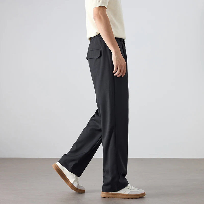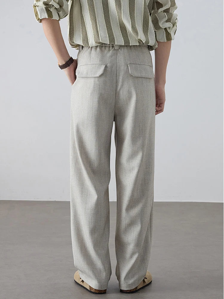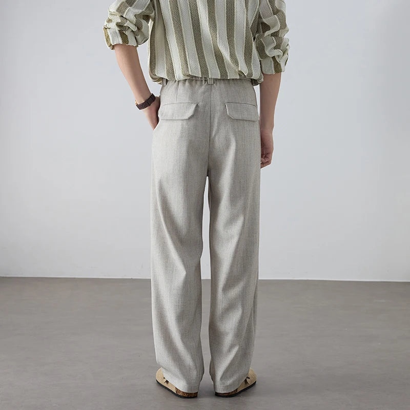 Lightweight tailored trousers designed with a relaxed straight leg silhouette for an easy summer fit. The soft fabric blend offers a smooth drape while remaining breathable and comfortable for warmer days. Finished with clean tailoring, slanted pockets and a semi-elasticated back waistband for everyday wear.