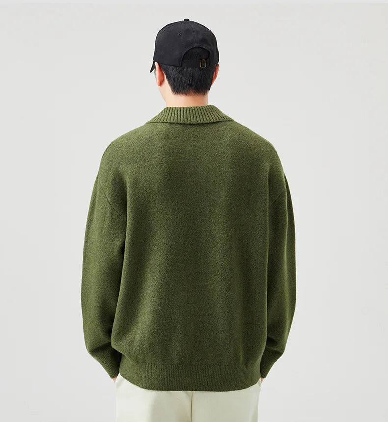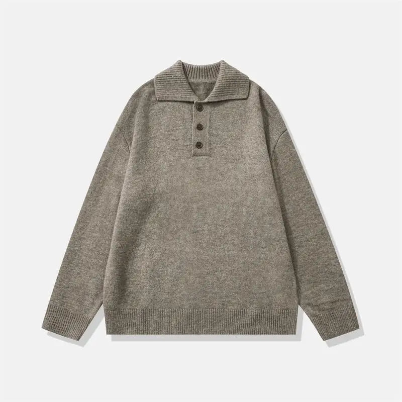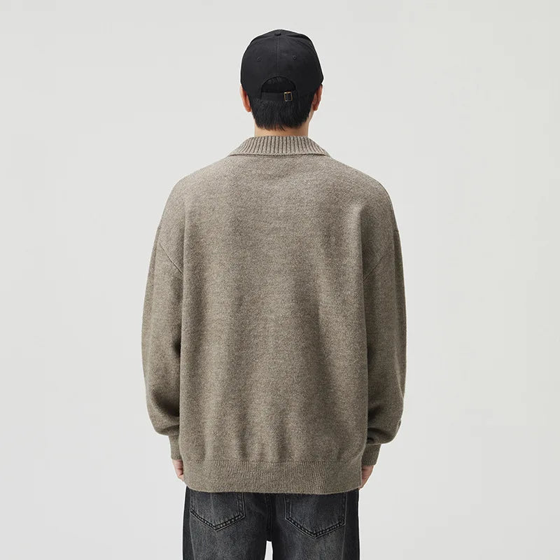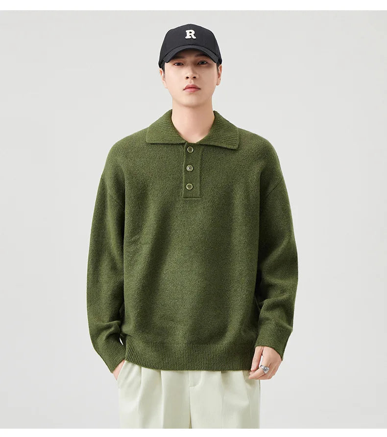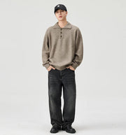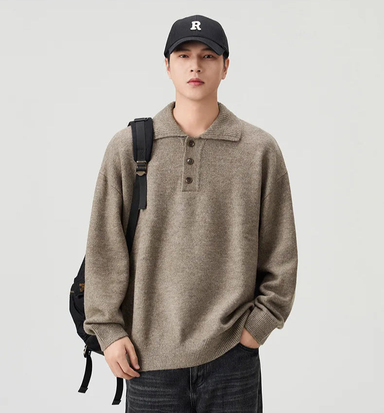 A timeless layer with a relaxed edge, this knitted polo sweater blends casual ease with refined detailing. Crafted from a soft acrylic-polyester knit, it delivers everyday comfort while holding its shape. The button placket and structured collar add a touch of polish, making it versatile enough to move between lounge, street, and smart-casual looks.