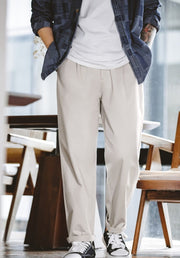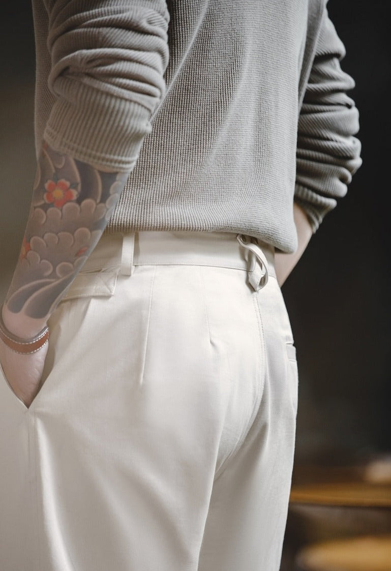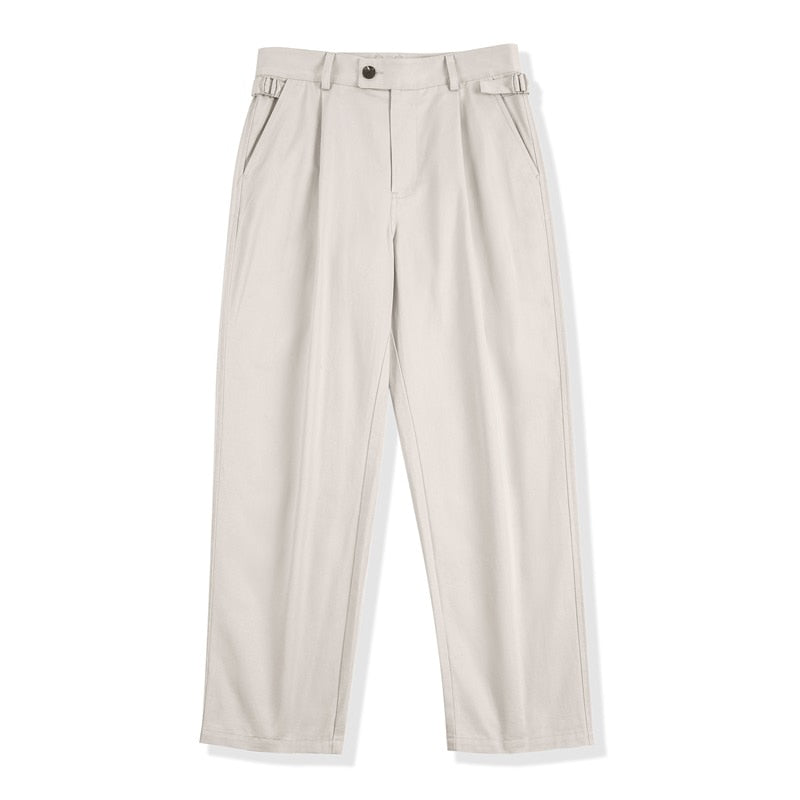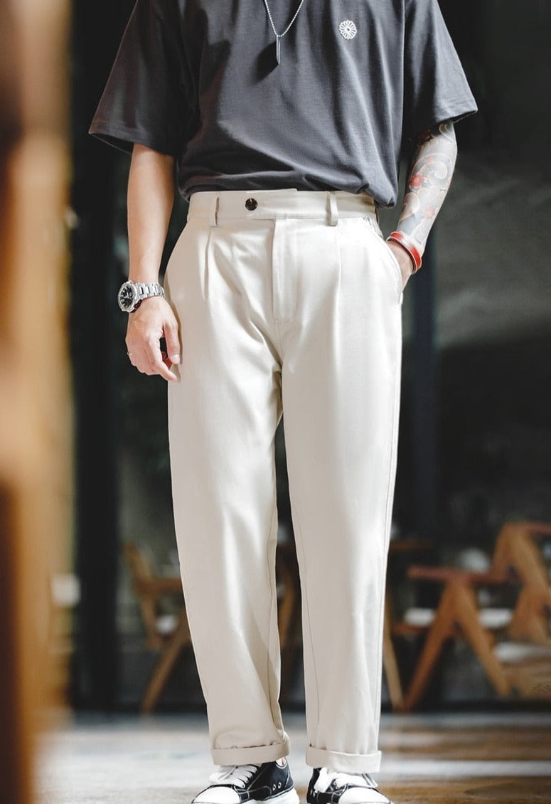 Stay comfortable and stylish in these Relaxed Fit Suit Trousers. Made of a lightweight cotton blend, these trousers feature belt loops and a zip fly with a button closure. They have two side pockets and a straight leg, making them perfect for smart-casual occasions. For an extra relaxed look, they're designed with a relaxed fit.